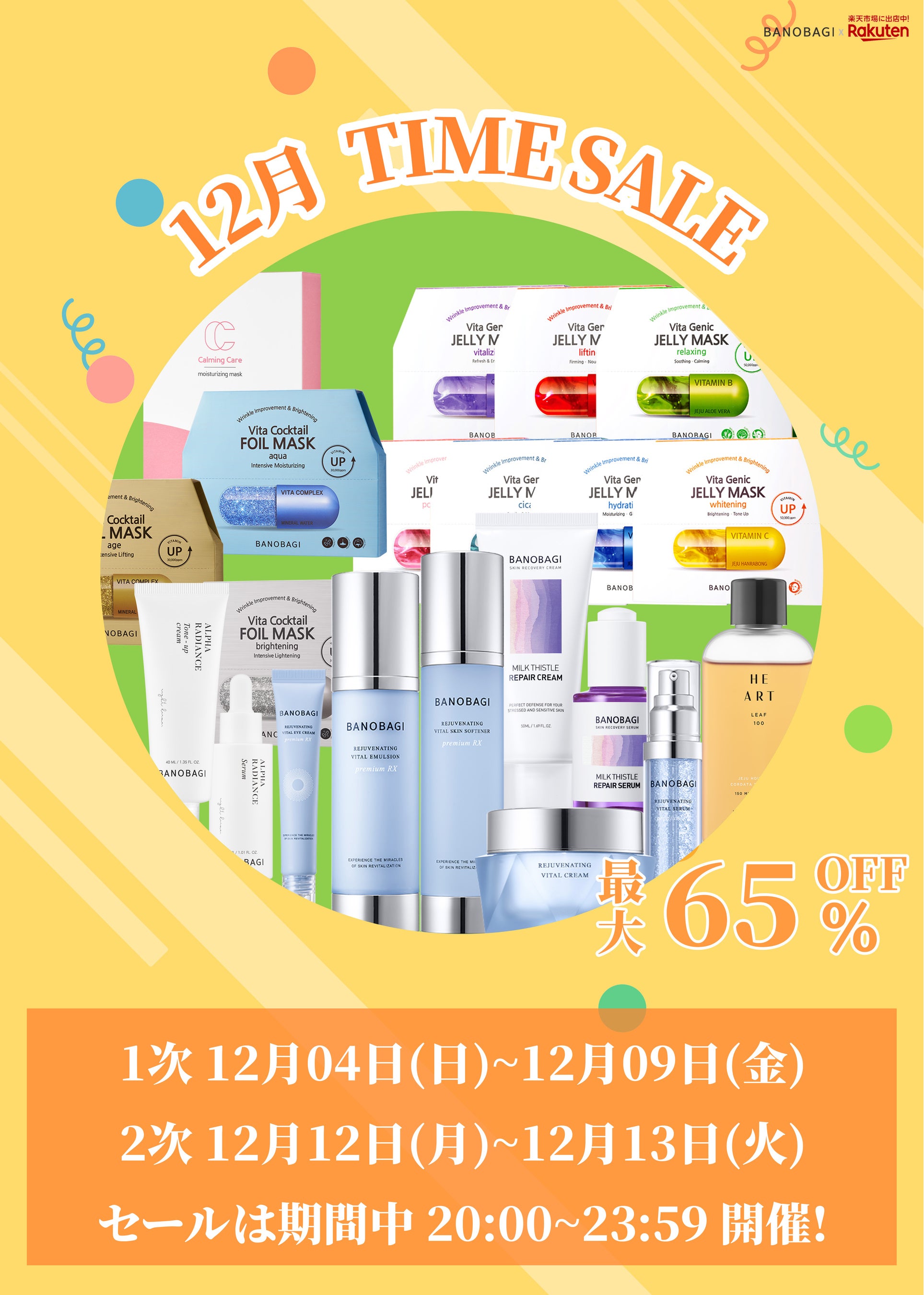 また、12月4日(日)より12月9日(日)まで、毎日20時から23時59分まで1次タイムセールが行われます。このタイムセールでは毎日異なるバノバギのヒット商品たちをお届けします。1次タイムセールにて、ご購入を逃されたお客様のために12月12日(月)から12月13日(火)まで2次タイムセールを行う予定です。