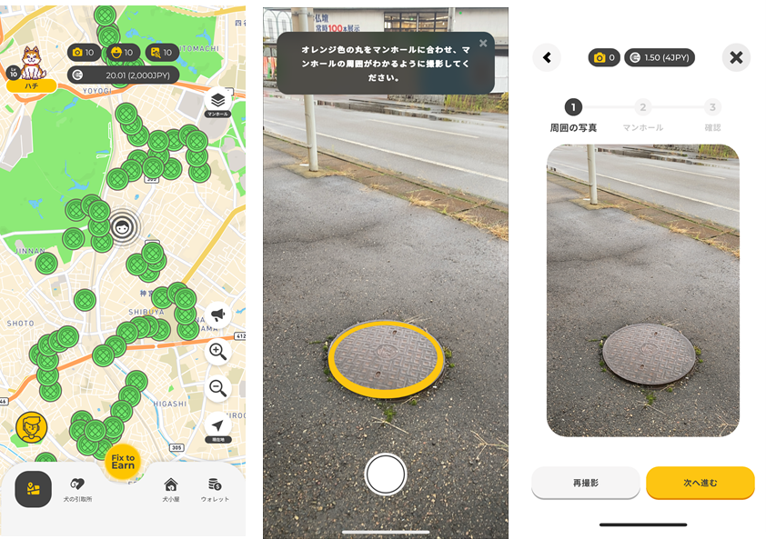 3)会期中、「TEKKON」アプリを使って、マンホールを撮影・投稿。