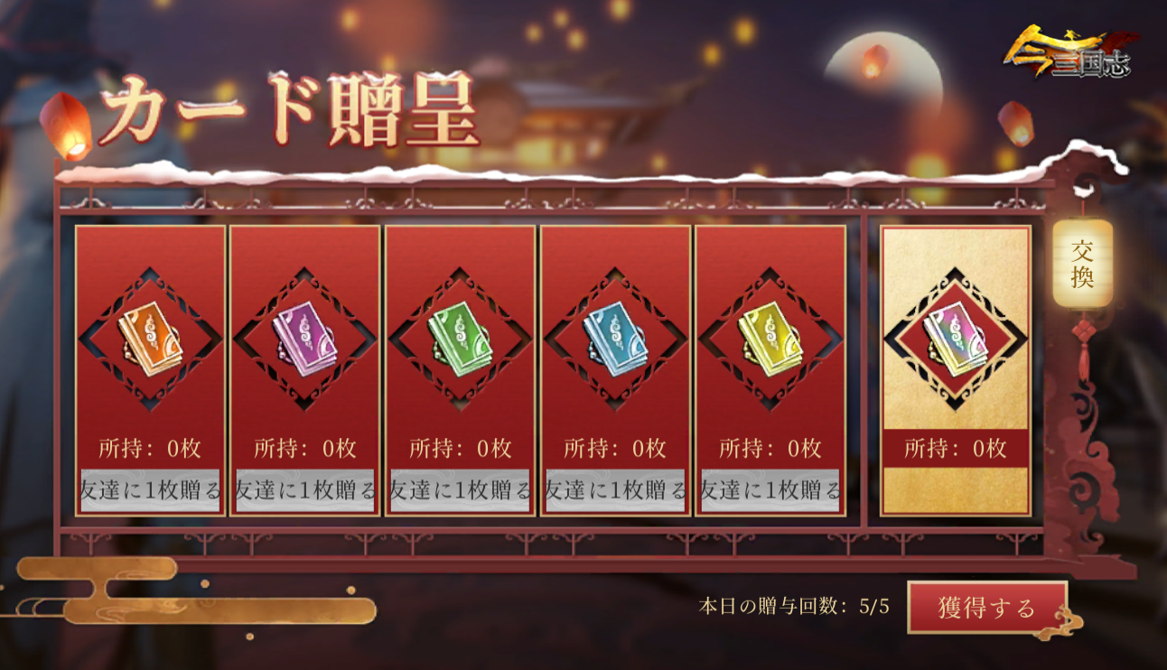 「お正月チャレンジ」として、イベント期間中に毎日、指定された任務を完成すると、新春カードをランダムで獲得できます。カードはお友達同士で互いに贈り合うことができ、さらに、収集したカードで特別報酬に交換できます!最高で珠玉x666をゲットするチャンスもありますので、この絶好のチャンスを見逃さないでください!