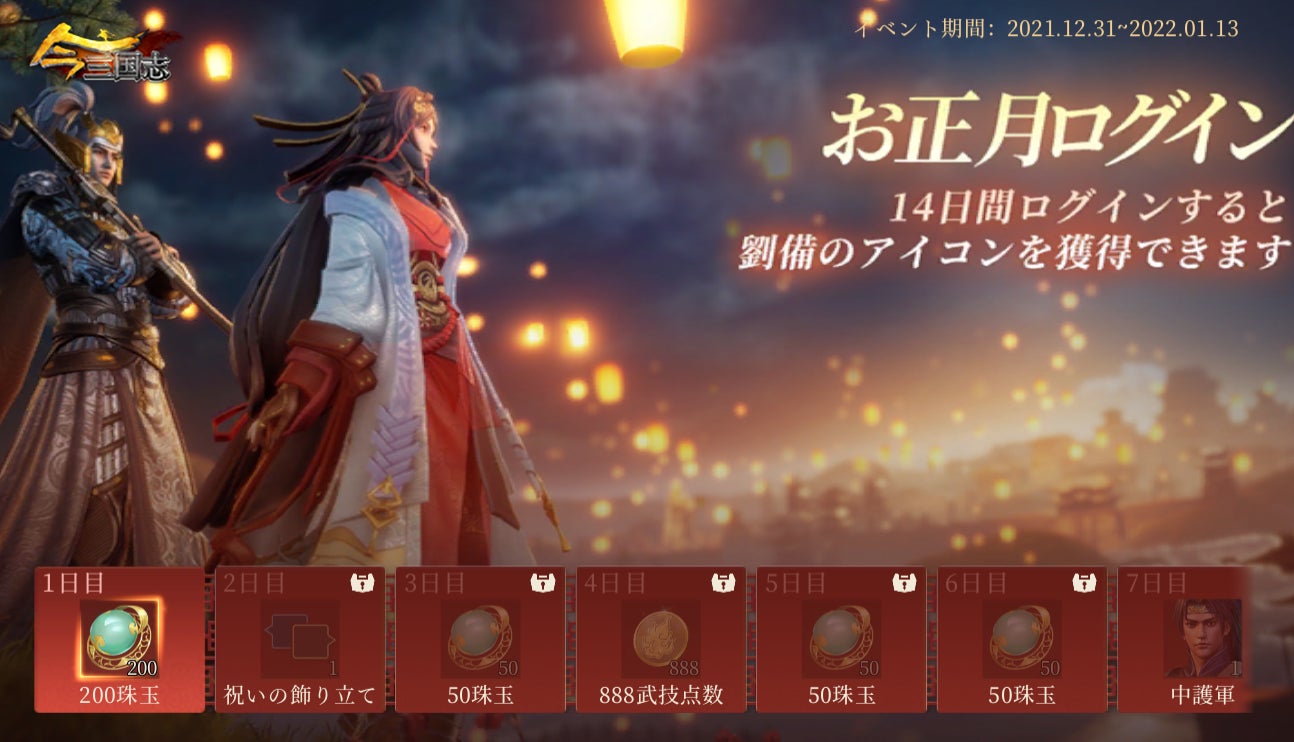 『今三国志』新春特別キャンペーン&イベント本日よりスタート!新春セットと連続ログインボーナス登場!