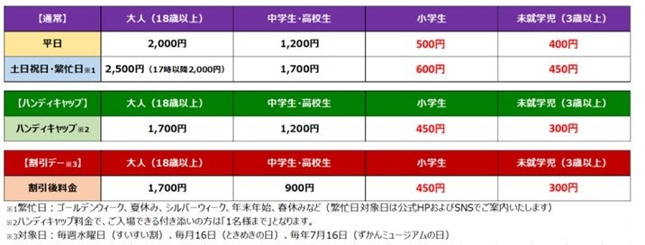 - 料金体系(小学生、未就学児は子ども料金半額キャンペーンの料金)