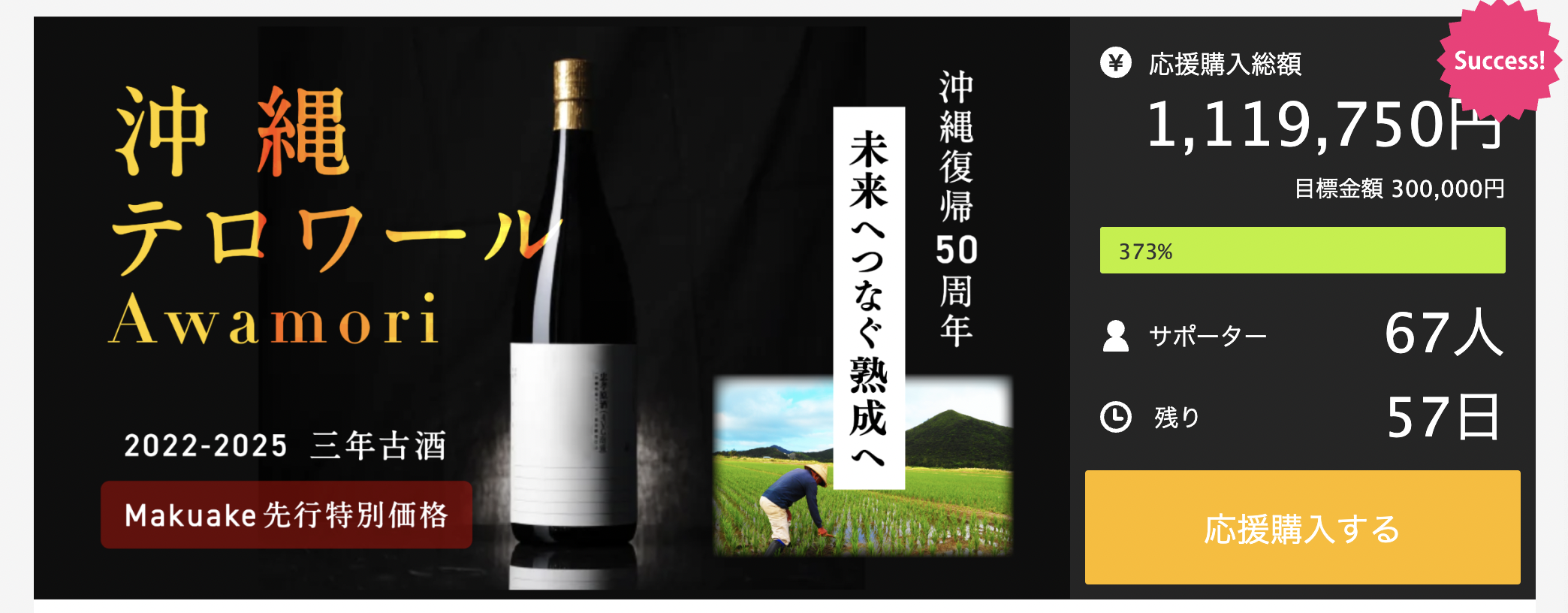 沖縄復帰50周年を記念したプロジェクトをMakuakeにて挑戦中。