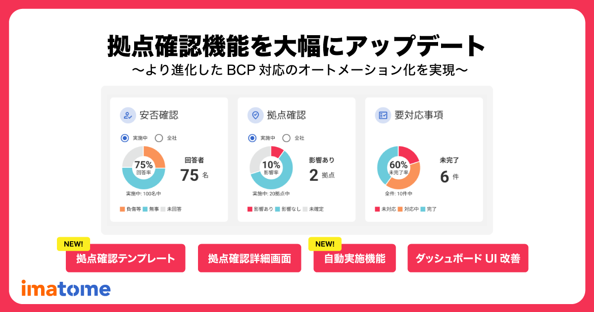 オールインワン危機管理サービス「imatome」の拠点確認機能を大幅にアップデート