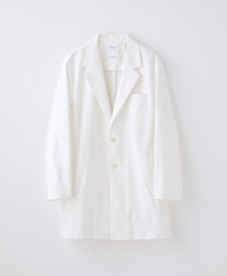 スマートな印象を与えるショートコートは、さっと羽織る感覚で着用することができる程よくリラクシングなシルエット。素材の軽さを生かした軽快でミニマルなデザインに、機能性を兼ね備えたアクティブなシーンで活躍する白衣です。