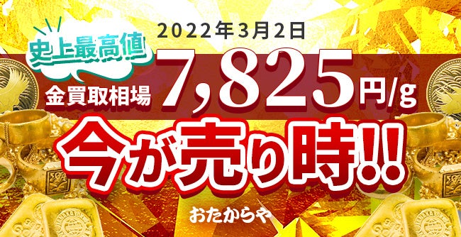 買取専門店「おたからや」は、金買取国内公表価格の更新を受けて、金製品の高価買取キャンペーン『今が売り時!買取金額1gあたり300円UP!」を2022年3月6日(日)まで開催期間を延長いたします。
