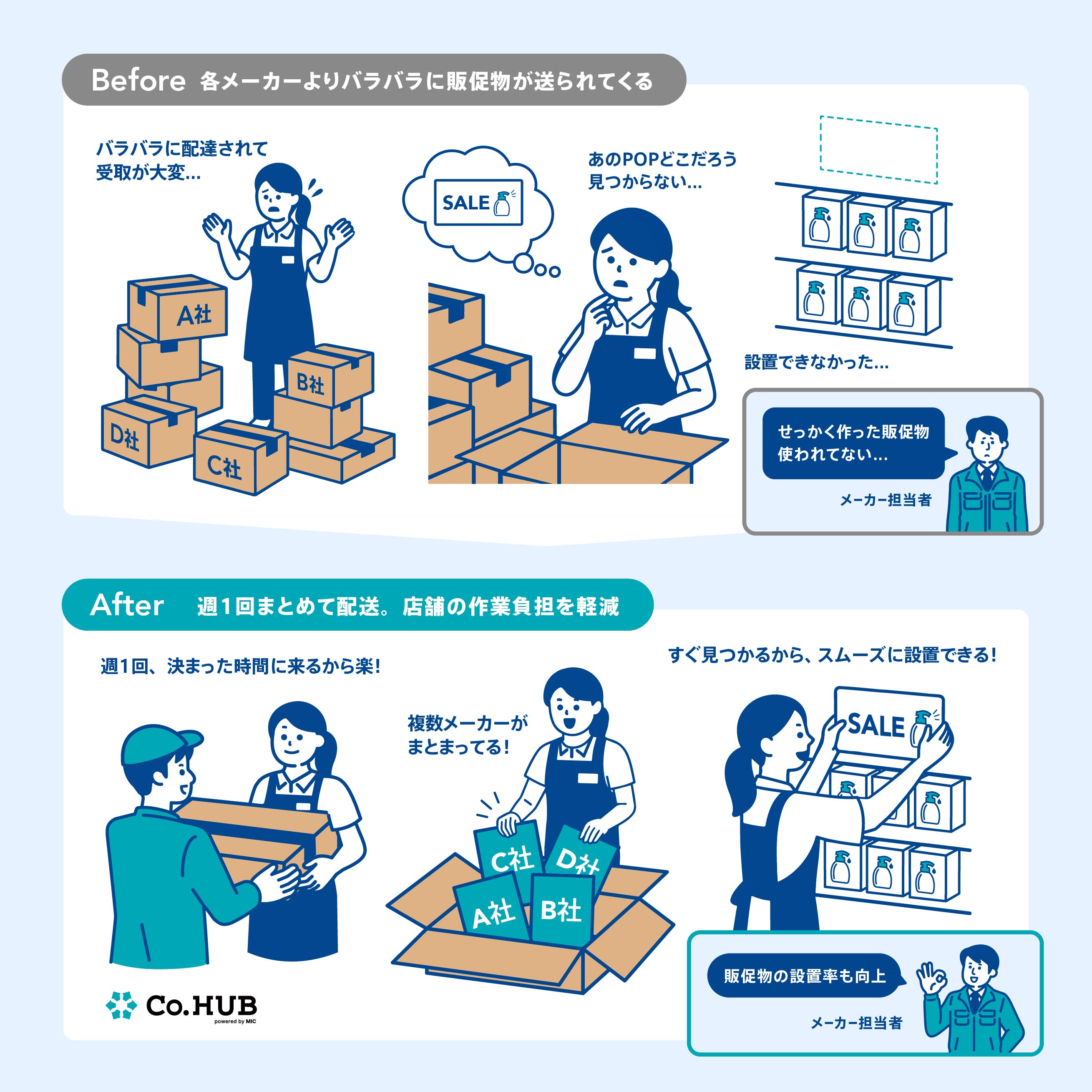 当社としては、今回の導入を契機にドラッグストア業界にとどまらず、家電量販店業界をはじめとした他業界への「Co. HUB」の展開を加速させ、販促物流の新たなスタンダードの確立を目指してまいります。