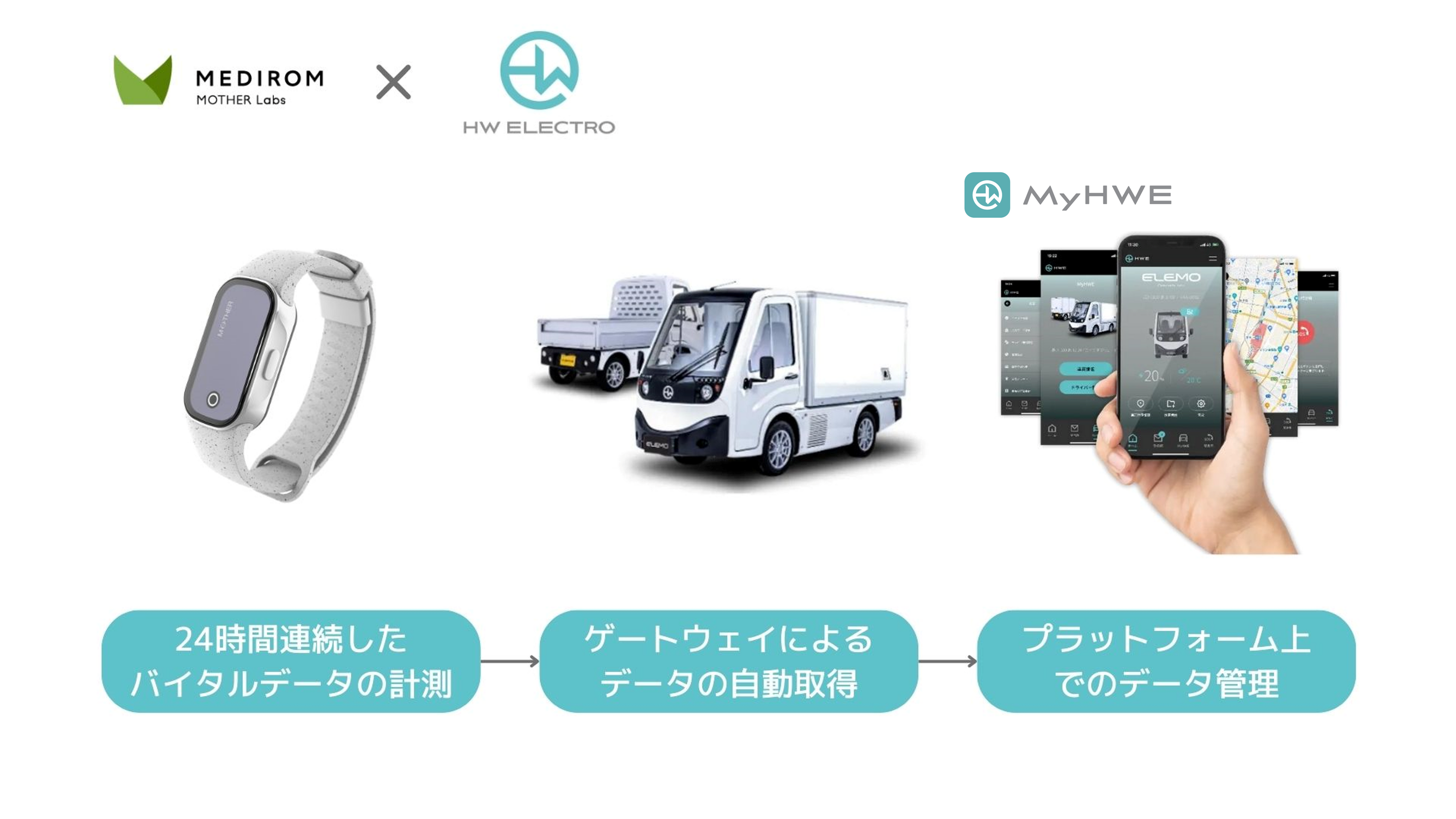 代表取締役:植草 義雄、以下「マザーラボ」)と、事業提携に関する基本合意書を締結いたしました。 HW ELECTROのコネクテッドサービス「HW ELECTRO Platform Service」と、マザーラボが開発する充電不要のスマートトラッカー「MOTHER Bracelet®︎」で取得するバイタルデータを連携させることで、ドライバー緊急時自動運転(以下「半自動運転」)の実現を目指して参ります。