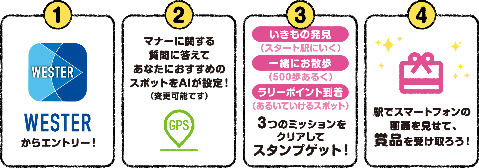 株式会社ギックス(本社:東京都港区、代表取締役:網野 知博、以下、ギックス)と、西日本旅客鉄道株式会社(本社:大阪市北区、社長:長谷川 一明、以下、JR西日本)は、3月に開業から25周年を迎えるJR東西線沿線にて、ギックスが提供する個客選択型スタンプラリー「マイグル」と、JR西日本が提供する新常態をサポートするMaaSアプリ「WESTER(ウエスター)」を活用したデジタルスタンプラリー「ちょっとちょっと!なマナーいきものペディアお散歩スタンプラリー」を開催します。