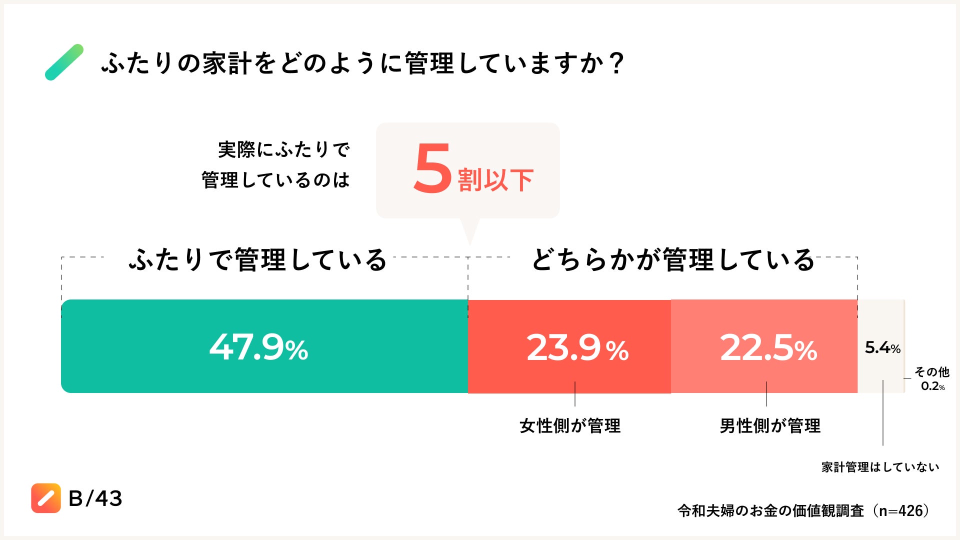 令和夫婦で実際にふたりで家計管理をしているのは「5割以下」