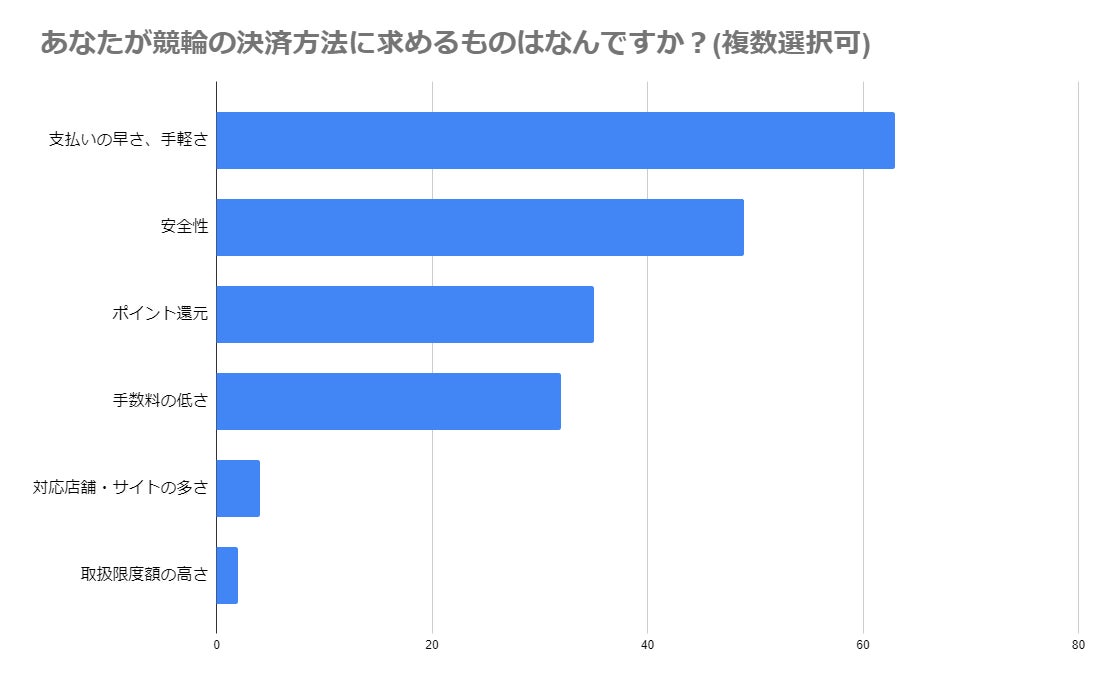支払いの便利さや安全性が、競輪ファンにとって最も重要な要素であることが分かります。