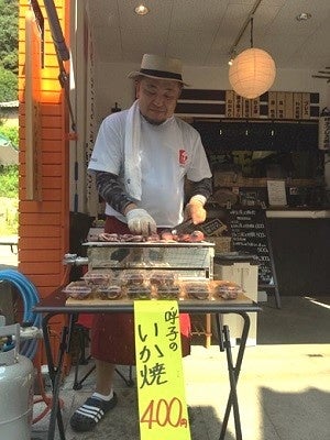 唐津市呼子(よぶこ)朝市で名物になった「イカせんべい」や、地元漁師と共同開発した炊き込みご飯の素など唐津の海の幸を販売します。