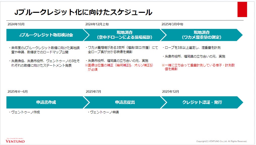 「KAISO」イノベーション企業である株式会社ヴェントゥーノ(福岡市中央区、代表取締役社長:中野勇人)は、糸島漁業協同組合と糸島市役所と共同で、10月21日に2025年度のJブルークレジット認証・取得に向けた「Jブルークレジット取得検討会」を開催しました。