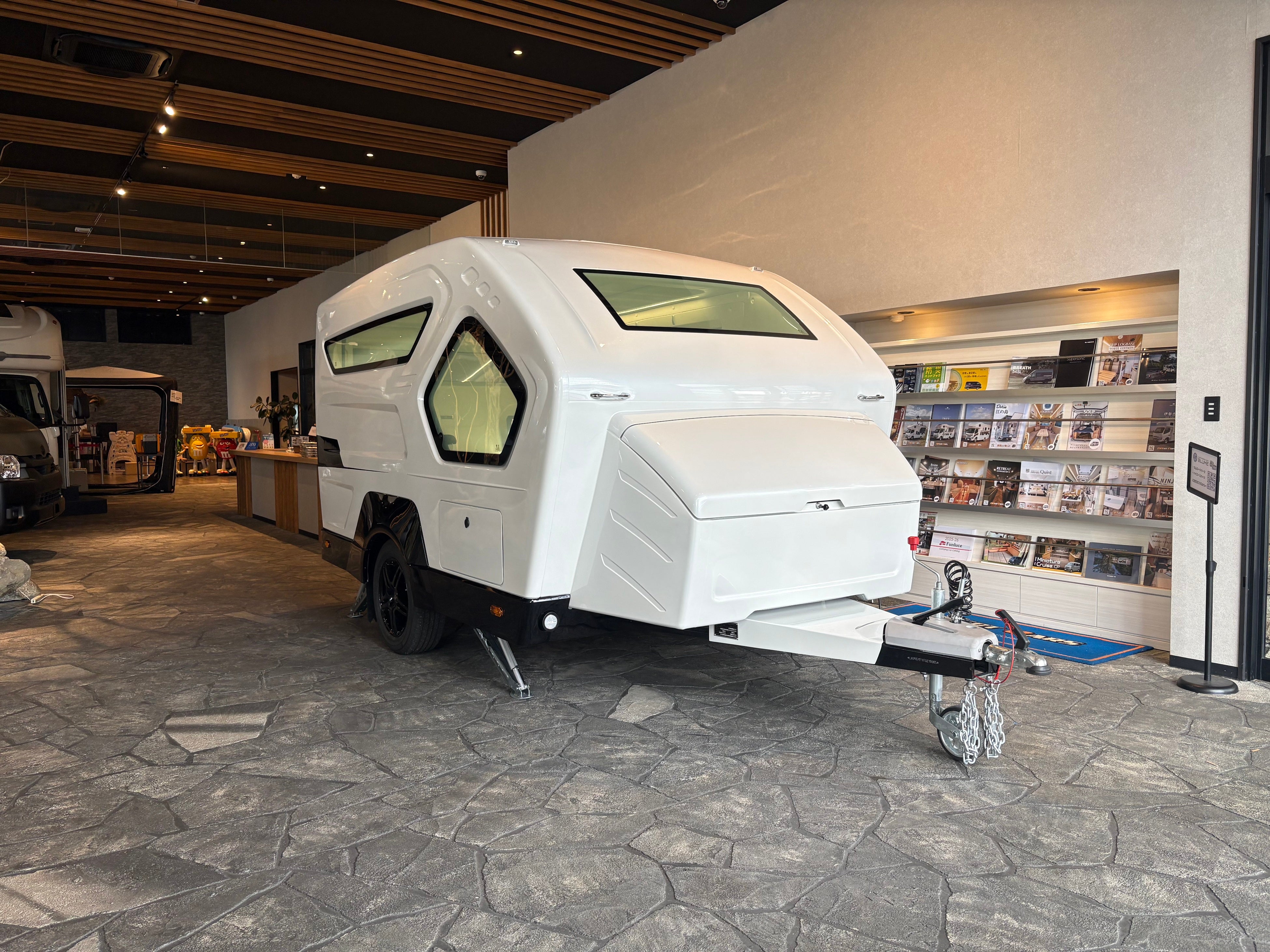 ・電動スタビライザー:設置時にスイッチ操作で自動展開し、トレーラーを安定固定。設営の手間を大幅に軽減。