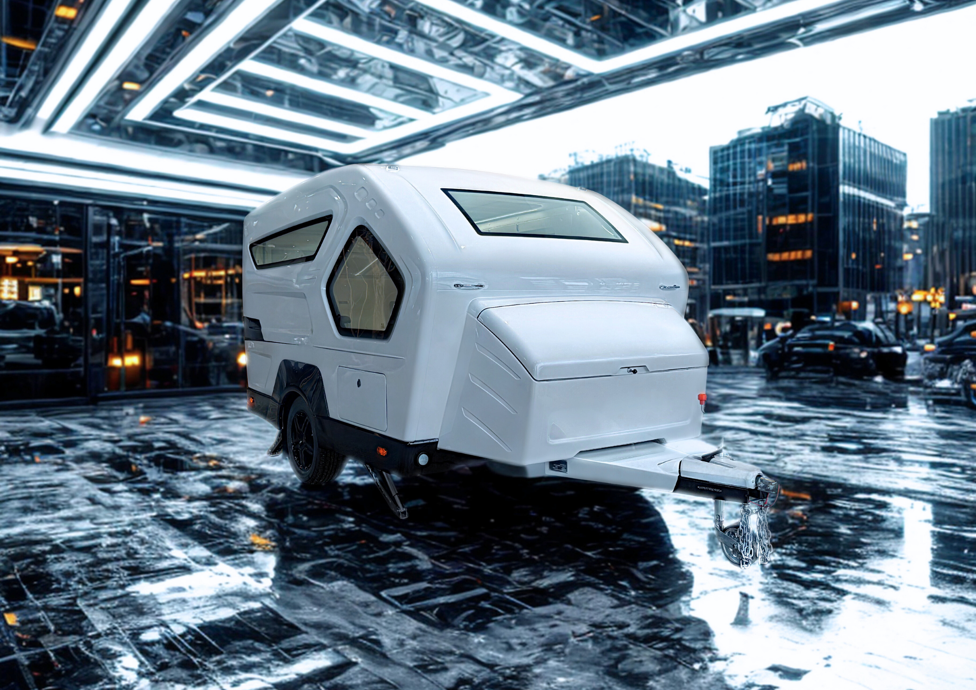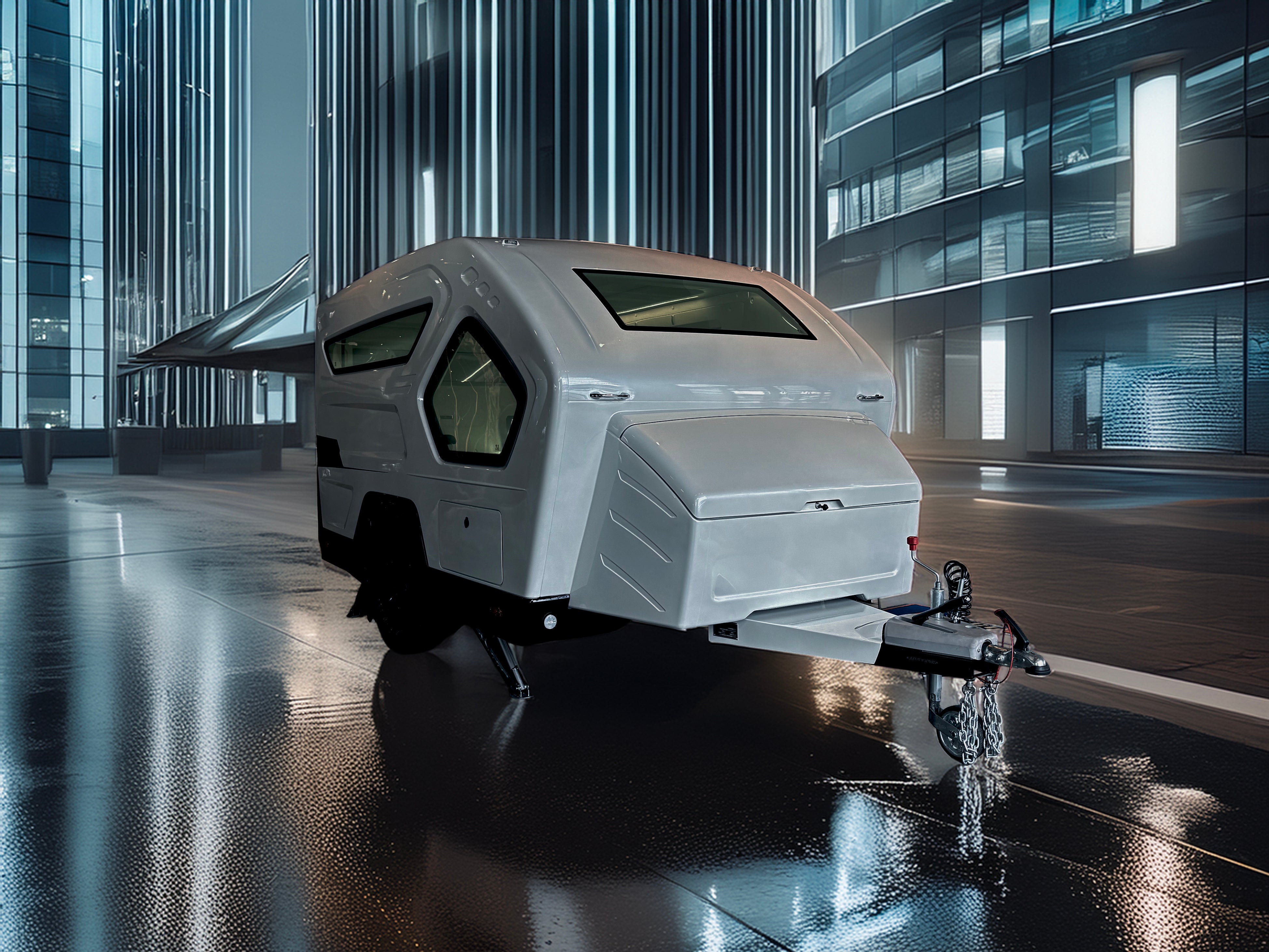 Aquila360Nは、プレス金型によるアルミ成形技術を用い、自動車ボディメーカーならではの乗用車レベルの車体構造設計を実現。これにより、従来のキャンピングトレーラーとは一線を画す高剛性・高耐久のボディを備え、走行時の安定性と安全性を大幅に向上させました。