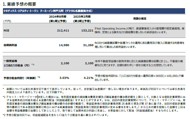3.0兆円(2023年6月末現在)を超える受託資産残高を有する国内大手の不動産アセットマネジメント会社グループであるケネディクスグループが管理する株式会社KST7は、公募型不動産セキュリティ・トークン「ケネディクス・リアルティ・トークン ドーミーイン神戸元町(デジタル名義書換方式)」(以下、「本ファンド」といいます。)の発行者(委託者) として、本ファンドの運用状況の予想についてお知らせします。