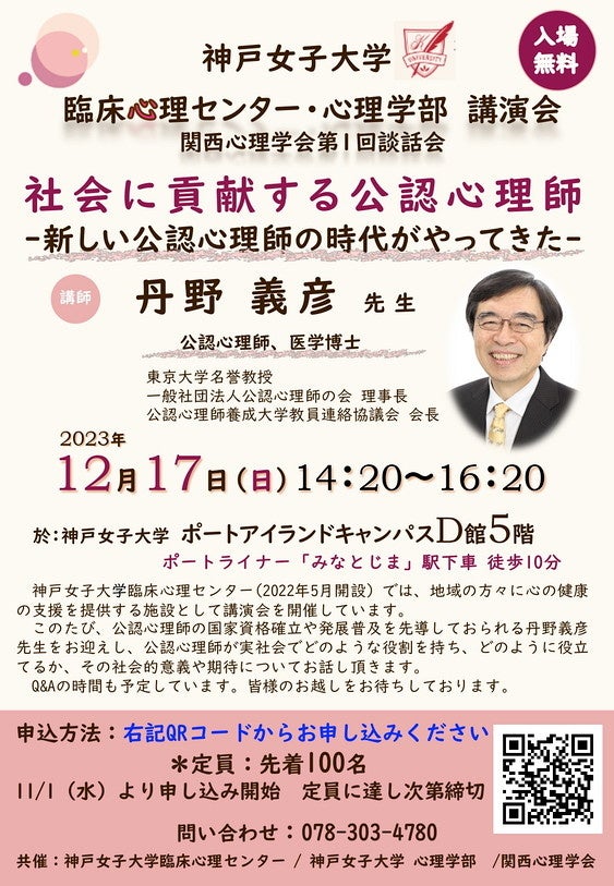 【12/17 開催】講演会「社会に貢献する公認心理師」のご案内<神戸女子大学>