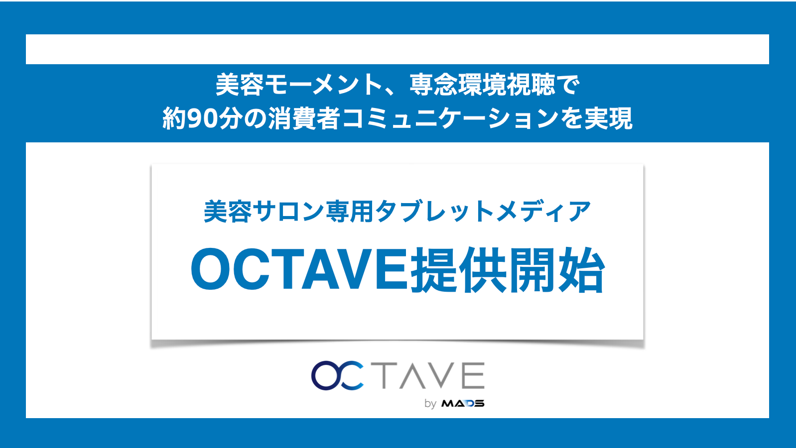 MADSは「新しい情報流通のカタチを創る」というビジョンを実現すべく、OCTAVEを通じて、多くのエンドユーザー、広告主様にソリューションを展開し、美容サロンの新しい空間の価値を創出してまいります。