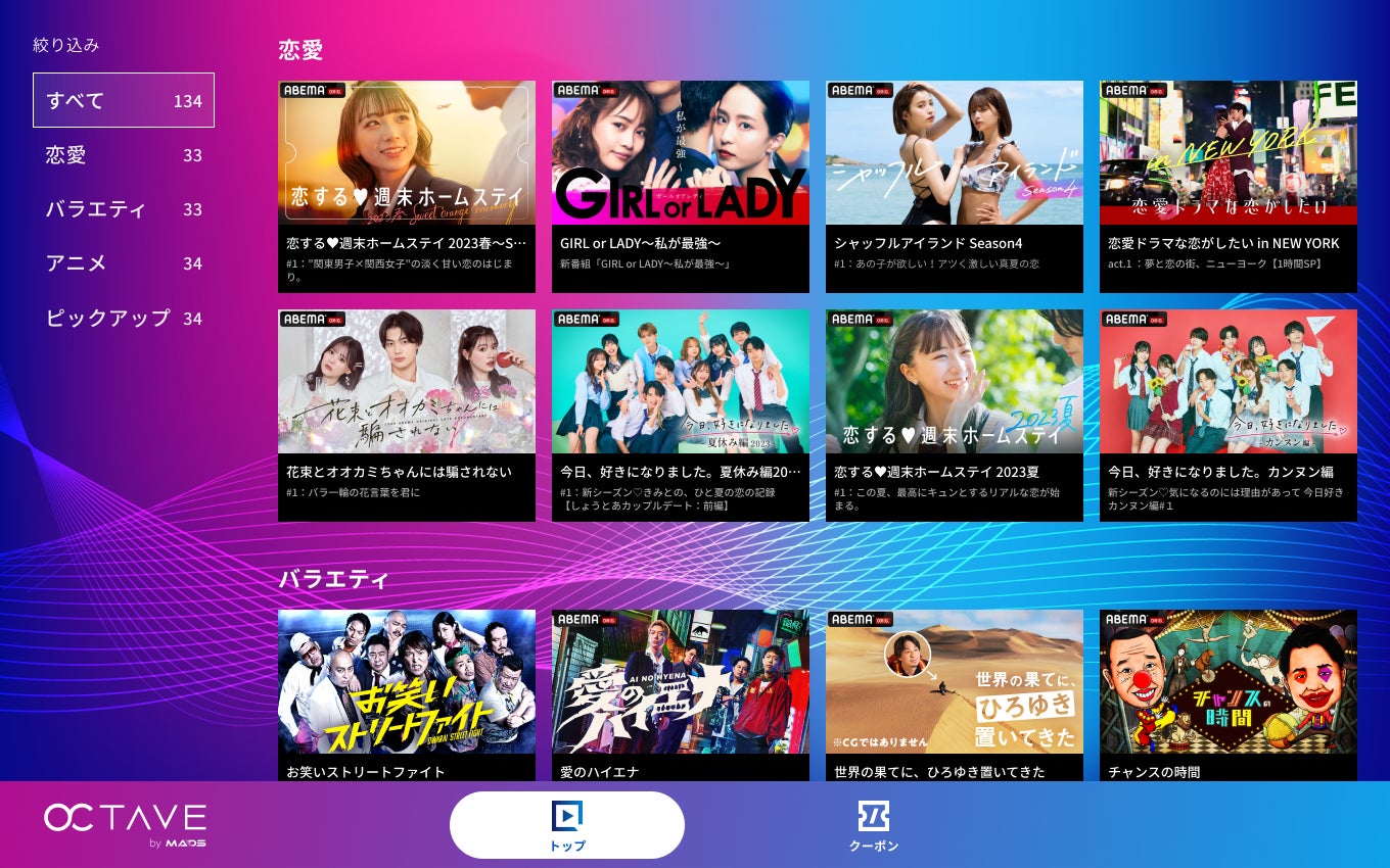 ※本メニューは「OCTAVE」に収録された「ABEMA」のコンテンツ面へ表示されるもので、実際の「ABEMA」サービスの広告枠と連動するものではございません。