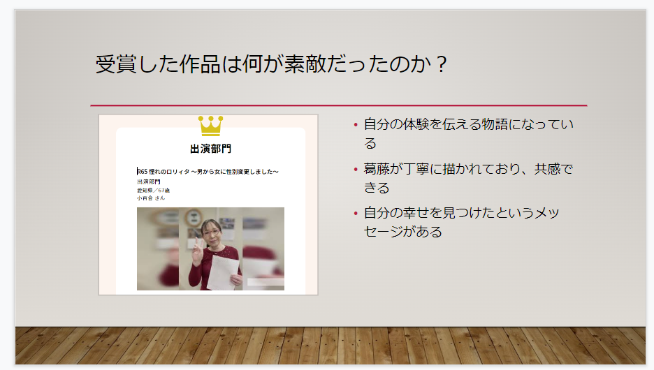 65歳以上対象の「R65全国どきTuberコンテスト」では、『動画の作り方や応募方法が分からない』という声を受け、先日オンラインで動画制作のワークショップを行いました。ご好評につき、ワークショップの模様を公式YouTubeチャンネルにて公開しておりますので、ぜひご覧ください。また、公式サイトでは、前回の受賞作品をご覧いただけます。挑戦したいけれど、どんな作品を作ればいいかわからない……という方はご参考にしていただけますと幸いです。