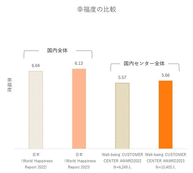 世界幸福度調査と本アワードの幸福度測定方法は異なるため単純比較はできませんが、数字だけを見ると国内のカスタマーセンターの幸福度の低さが日本全体の幸福度を下げているとも言えます。