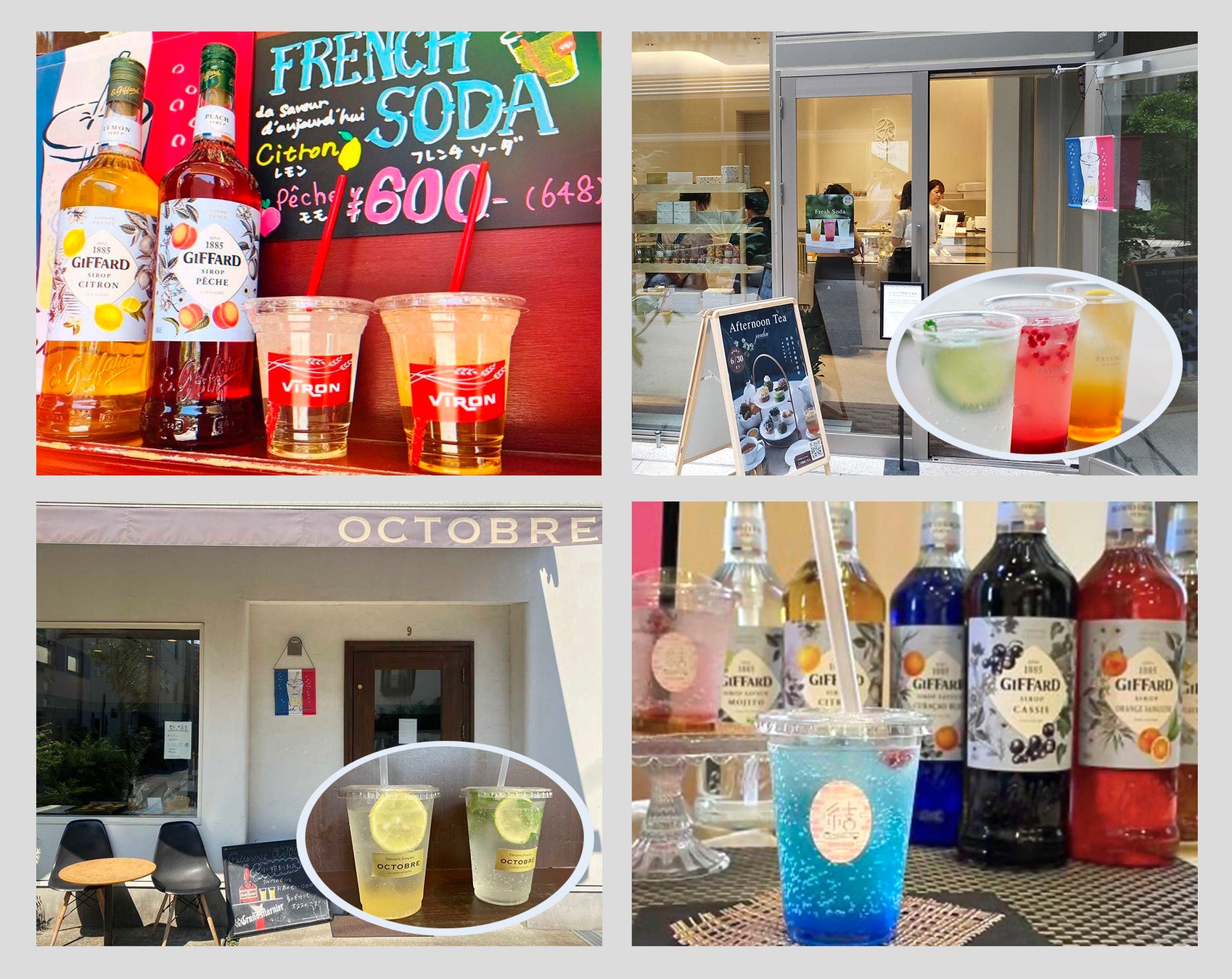 ジファールは、このフランスの文化を取り入れたフランス産シロップと炭酸水で作るドリンクを「フレンチソーダ」と称し、パティスリーやカフェを中心に提案しています。