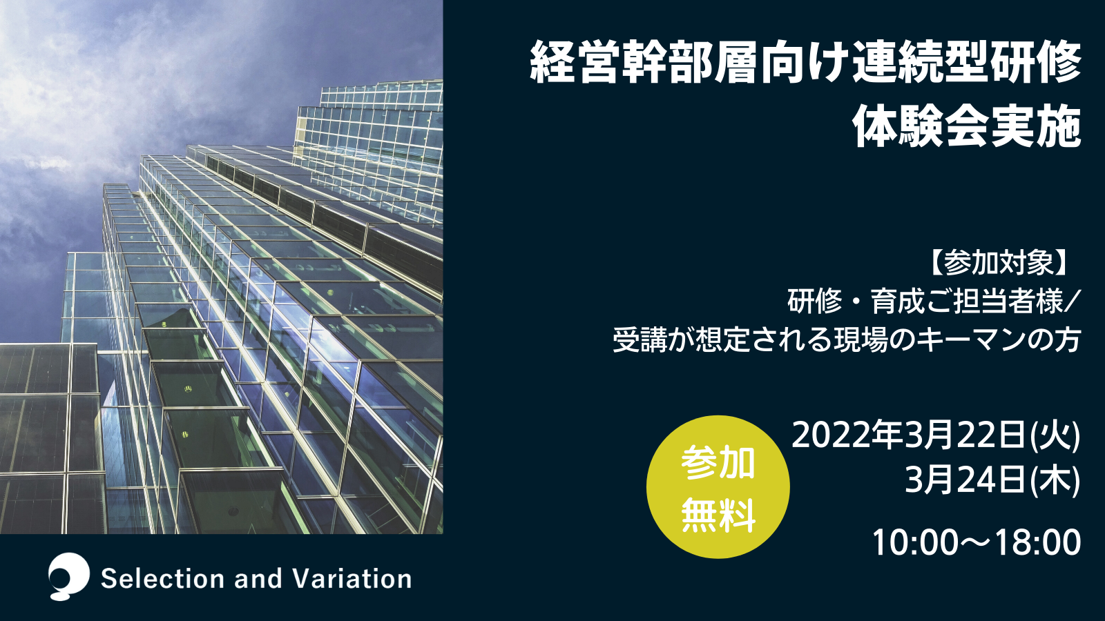 【2022/3/22、3/24限定開催】経営幹部層向け連続型研修 無料体験会実施のお知らせ