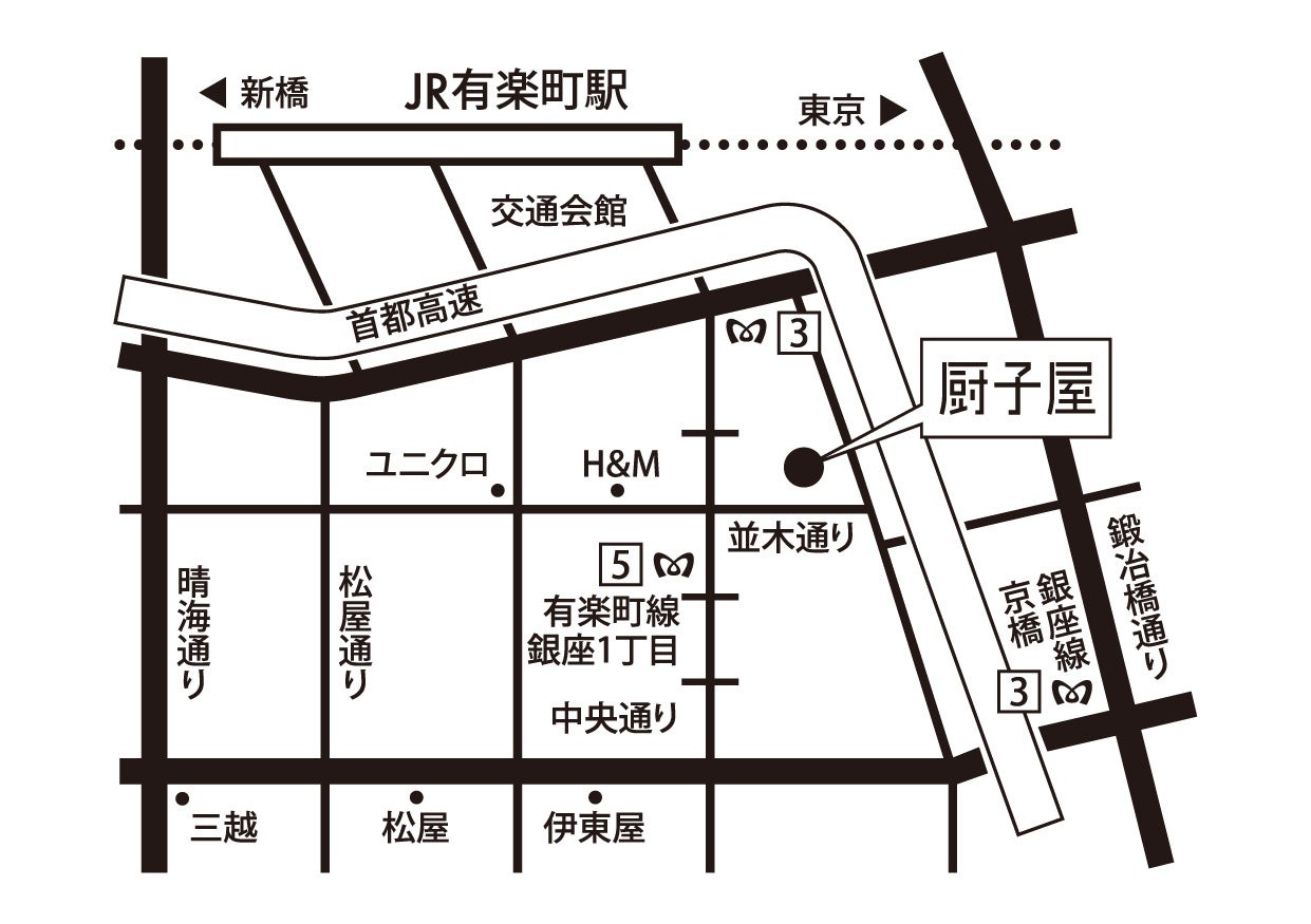 アクセス:JR有楽町駅「京橋口」徒歩3分 / 東京メトロ有楽町線「銀座1丁目駅5番出口」徒歩2分 / 東京メトロ銀座線「京橋駅3番出口」徒歩3分