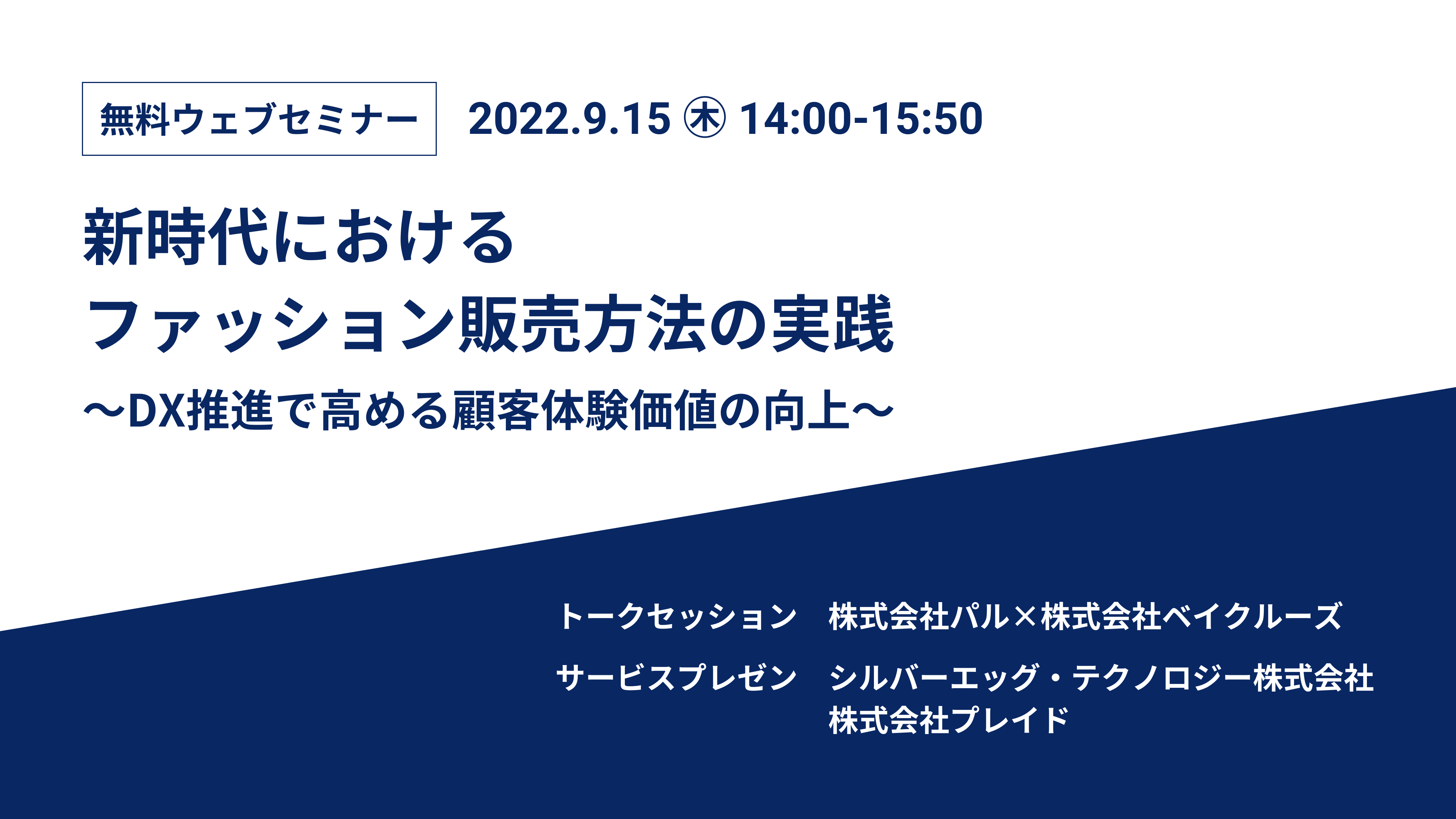 AI技術をベースとしたデジタルマーケティングサービスを提供するシルバーエッグ・テクノロジー株式会社(本社:大阪府吹田市、代表取締役社長&CEO:トーマス・フォーリー、証券コード 3961)は、2022年9月15日(木)に開催される、株式会社繊研新聞社主催のウェビナー「新時代におけるファッション販売方法の実践 ~DX推進で高める顧客体験価値の向上~」に登壇します。