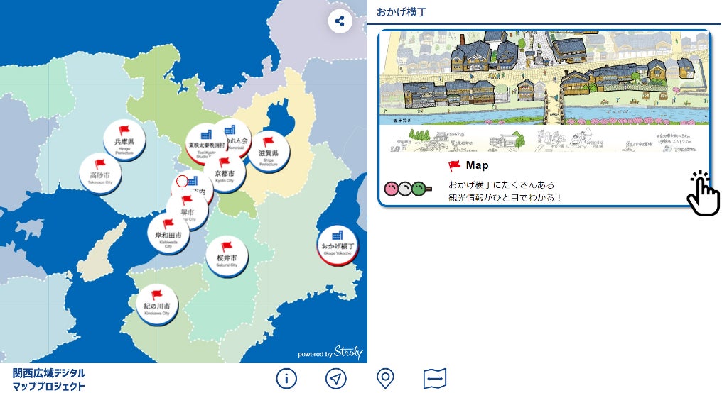 地図のオンラインプラットフォームを運営する株式会社Stroly(代表取締役社長 髙橋 真知(たかは しまち)、以下Stroly)と一般財団法人関西観光本部(理事長 松本正義(まつもと まさよし)、以下 関西観光本部)、一般社団法人関西イノベーションセンター(代表理事 林安秀(はやし やすひで)、以下 MUIC)は、3社協働プロジェクトである「関西広域デジタルマップ」において、β版※1をリリースいたしました。