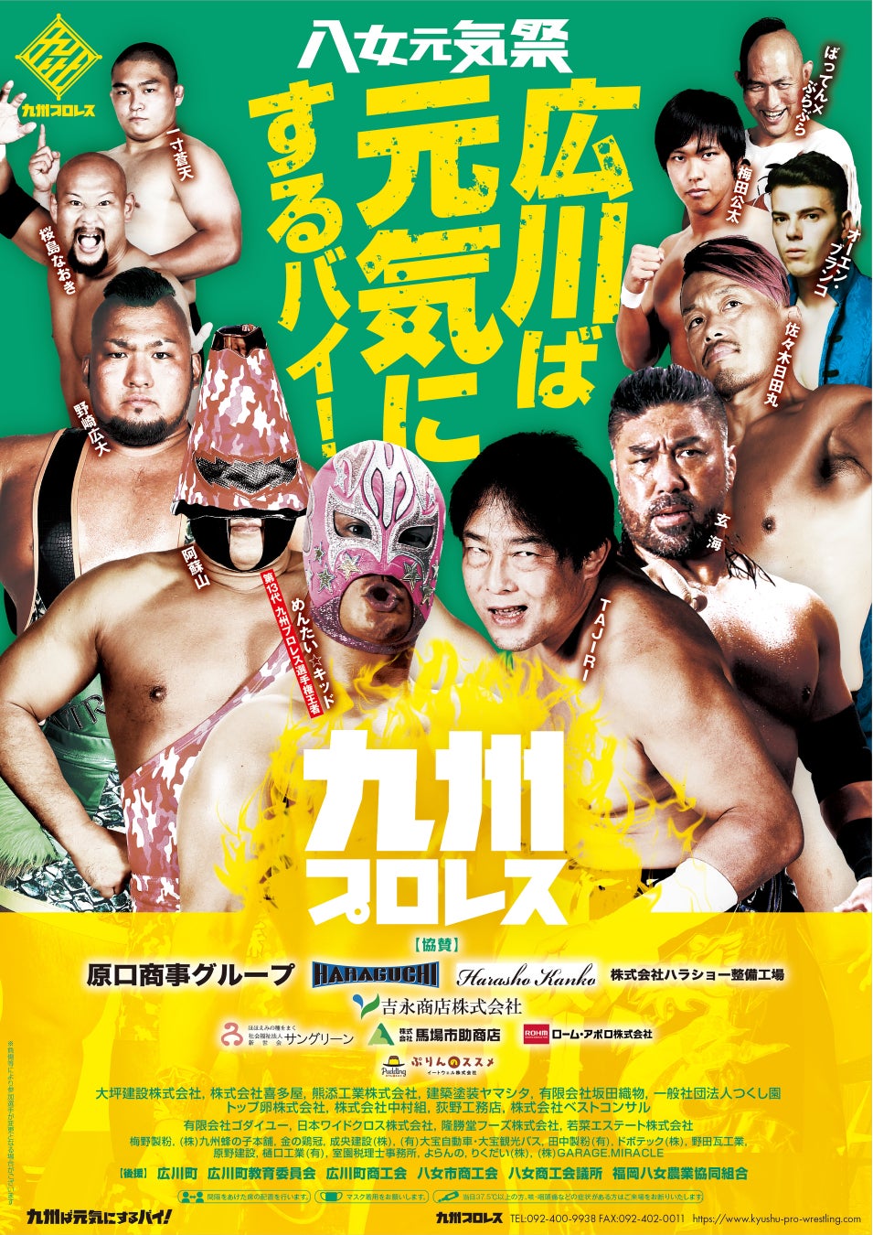 九州プロレスが主催する観戦無料大会「八女元気祭 広川ば元気にするバイ!」が2月19日(日)下広川小学校の体育館にて開催される。今大会をもって海外修行へ旅立つ九州プロレス生え抜きレスラー野崎広大は「九州へ戻ってくるかどうかは分からない」と覚悟と決意を胸に九州を離れる。そんな野崎を見送ろうと無料観戦応募が殺到!観戦者数のおよそ3倍以上の応募が寄せられた。野崎の九州ラストマッチは、練習生時代から寮で共同生活を送っている一寸蒼天。師匠から弟子へ試合を通して何を残すのかー