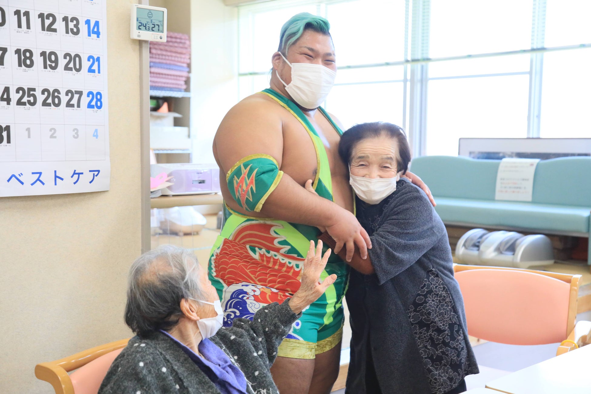 椅子に座ったままのスクワットでも「10回すればキツイもんやねぇ」「掛け声が、さすがプロレスやね」と皆さんから自然に声がもれていました。