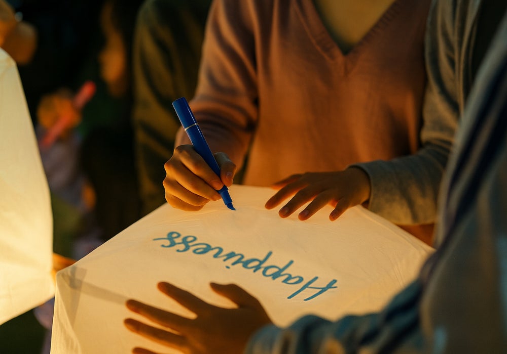 ご家族、ご友人、恋人同士で言葉にできず胸にしまっていた感謝の気持ちをランタンに乗せ新年の夜空に打ち上げましょう。大切な人との忘れられない素敵な思い出づくりになるはずです。会場にはペンをご用意していますが、ご自身で油性ペンをご持参いただけると混雑を避けてご記入いただけます。
