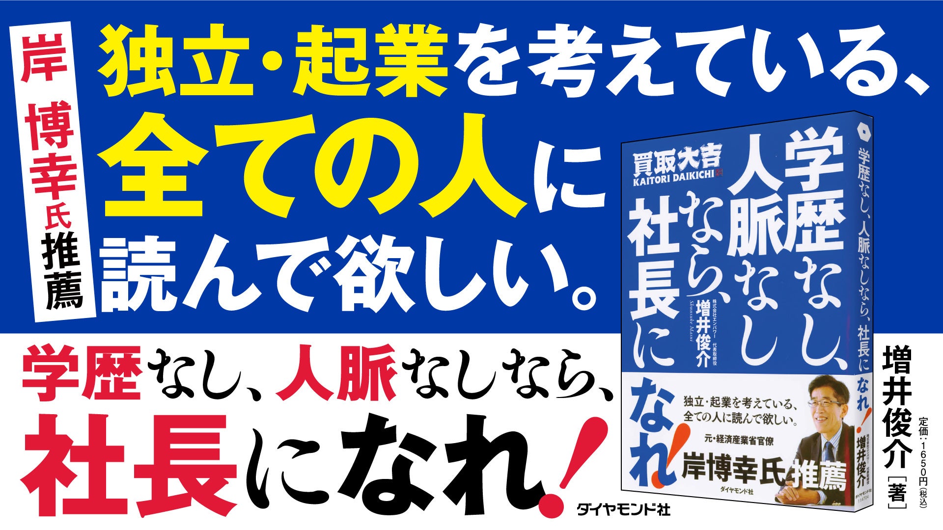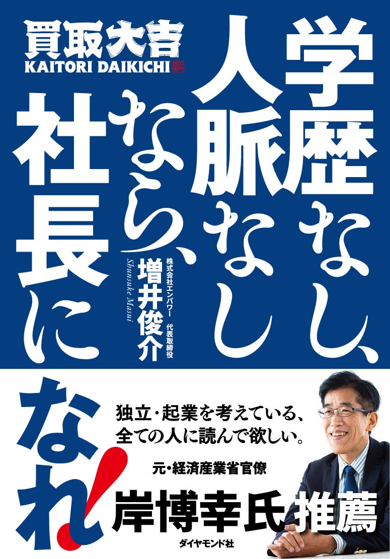『買取大吉』を展開する株式会社エンパワーの代表取締役・増井俊介が、『買取大吉』フランチャイズの成功の秘密について語った著書『学歴なし、人脈なしなら、社長になれ!』がダイヤモンド社より出版されます。