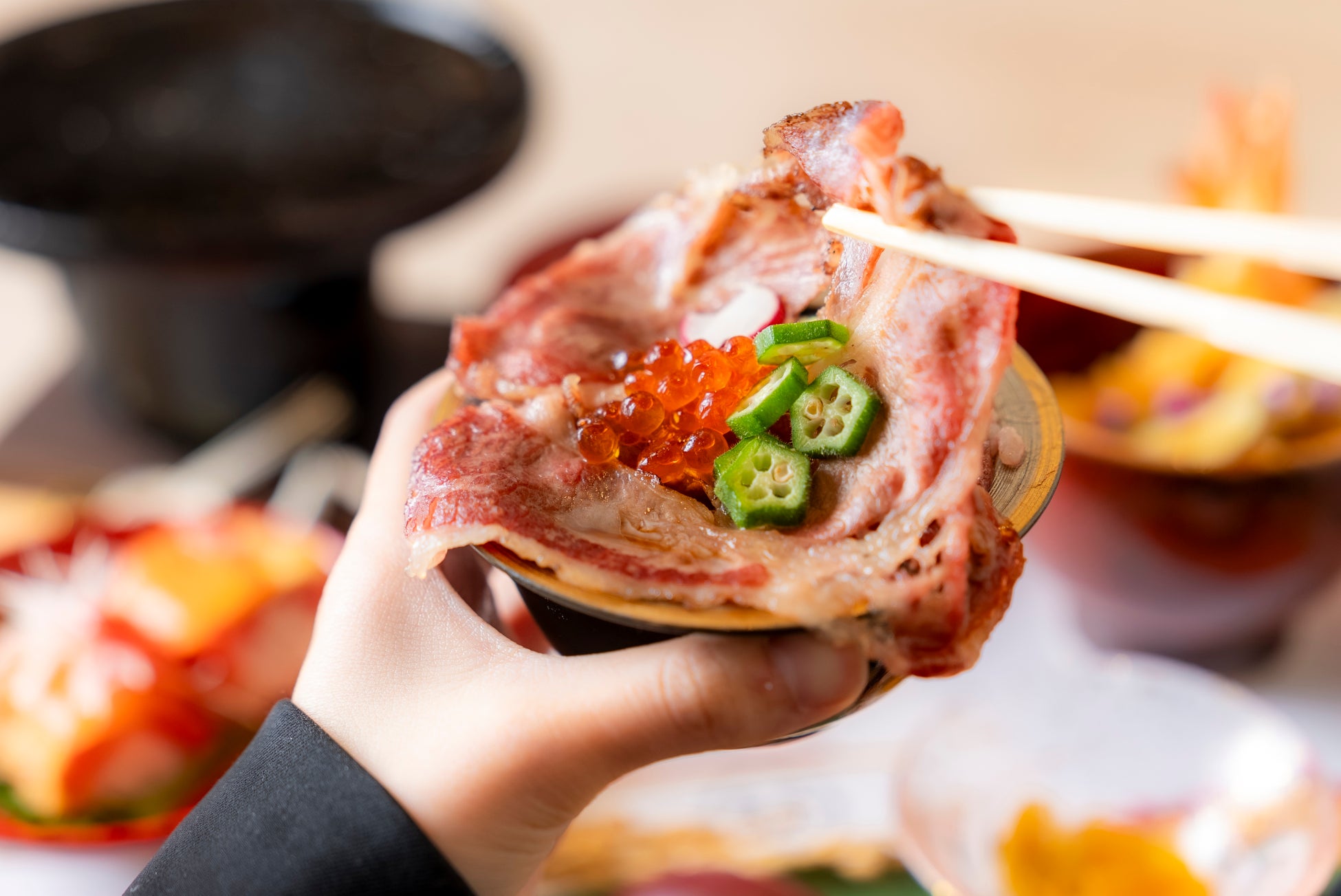 上質な和牛を使用した焼きしゃぶを、甘味のあるタレと一緒にお楽しみください。