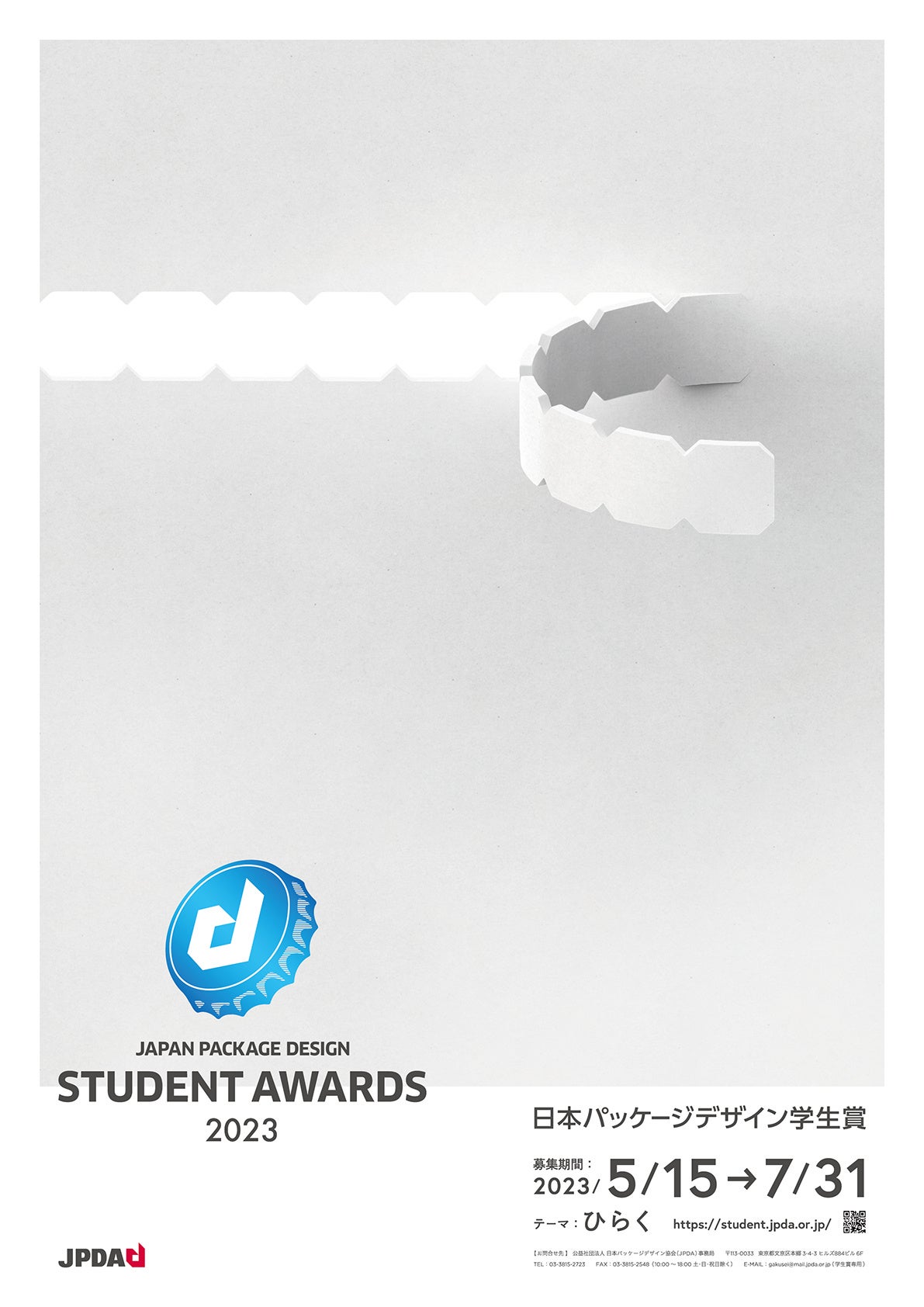 【日本パッケージデザイン学生賞2023】の応募専用サイトがオープンしました。「ひらく」をテーマに、オリジナリティのある学生の作品を募集します。応募開始は2023年5月15日(月)より。