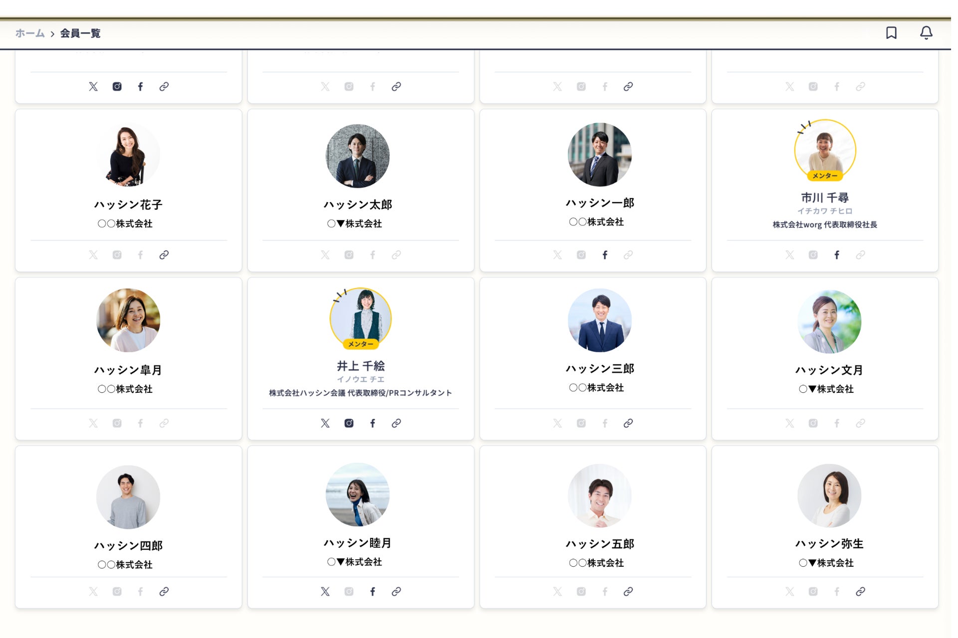 会員を一覧で表示する機能を追加し、所属企業などが一目でわかるようになりました。今後は、採用広報やIT業界広報など、より細かく職種や業界を絞った、小規模な交流会の企画も予定しています。