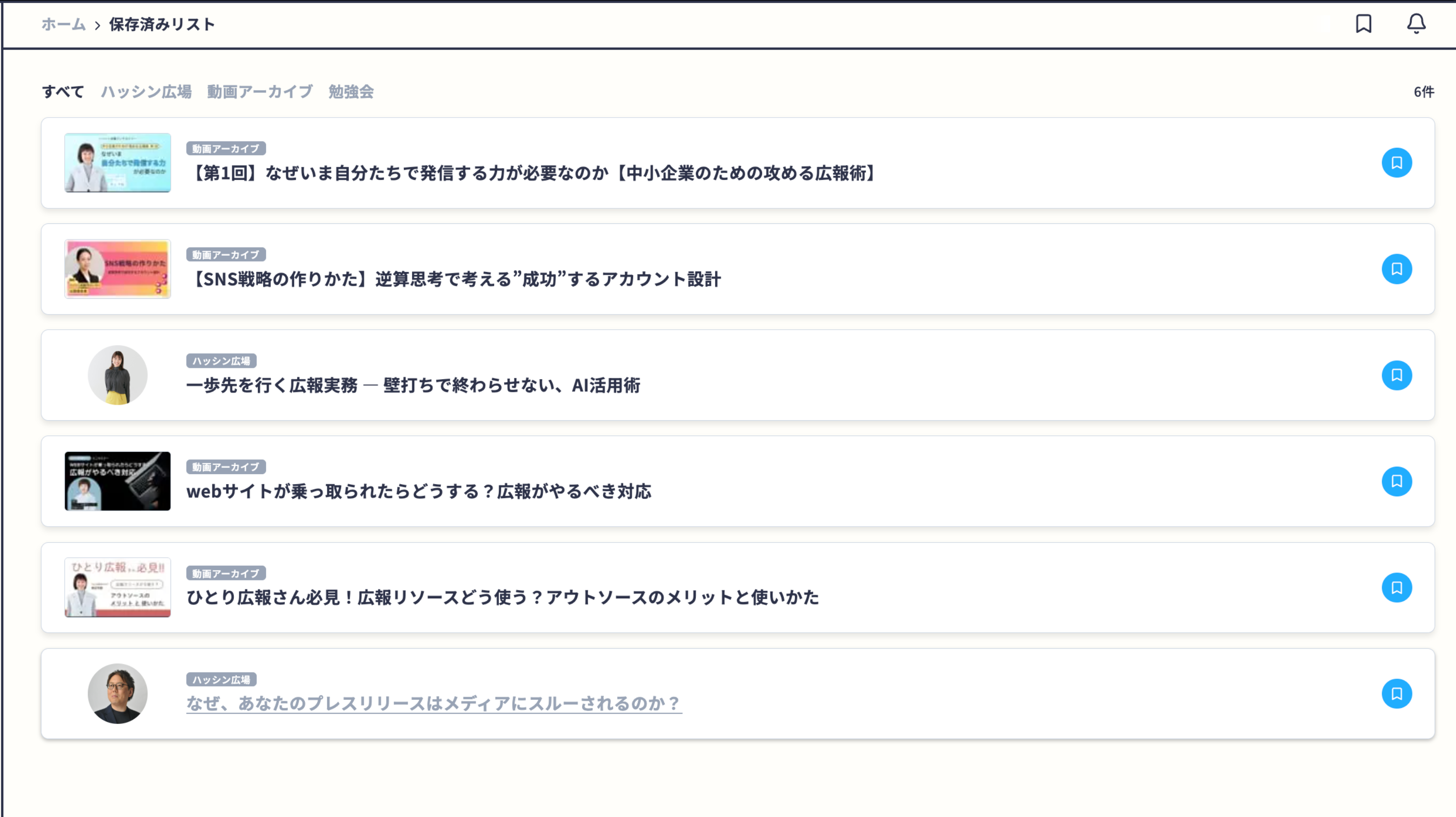 広報によって社会から共感と信頼を獲得し、事業成長に貢献するための実践的なコミュニティです。広報担当者が抱えるあらゆる悩みを解決する相談/学び・実践/交流の場をワンストップで提供しています。業界動向、時流・流行、スキルレベルなど、個人のフェーズに合わせたサポートで継続的な広報活動を可能にします。