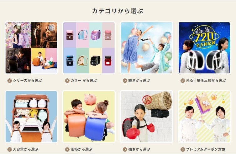 リニューアルし、更に見やすくなったオンラインショップでは「ふわりぃランドセル」全シリーズを詳しくご覧いただくことが可能です。