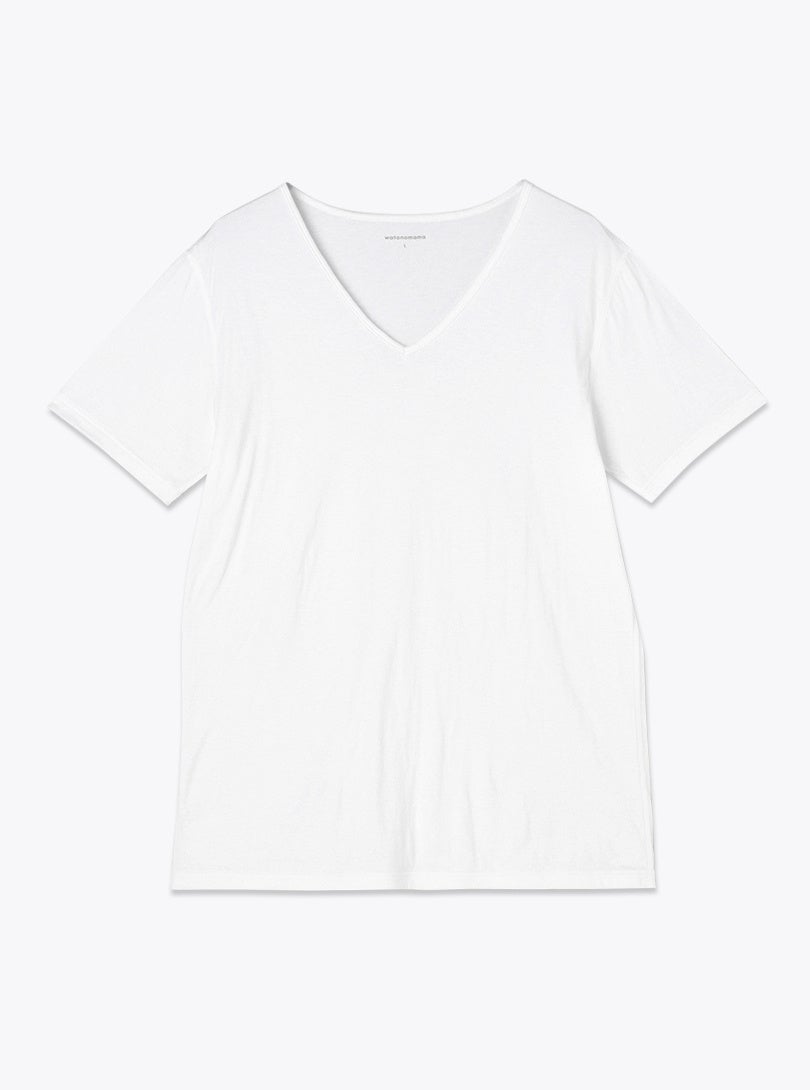 watanomamaの快適さはそのまま、深めのVネックなのでシャツのインナーとしてもシーズン問わずに活躍します。