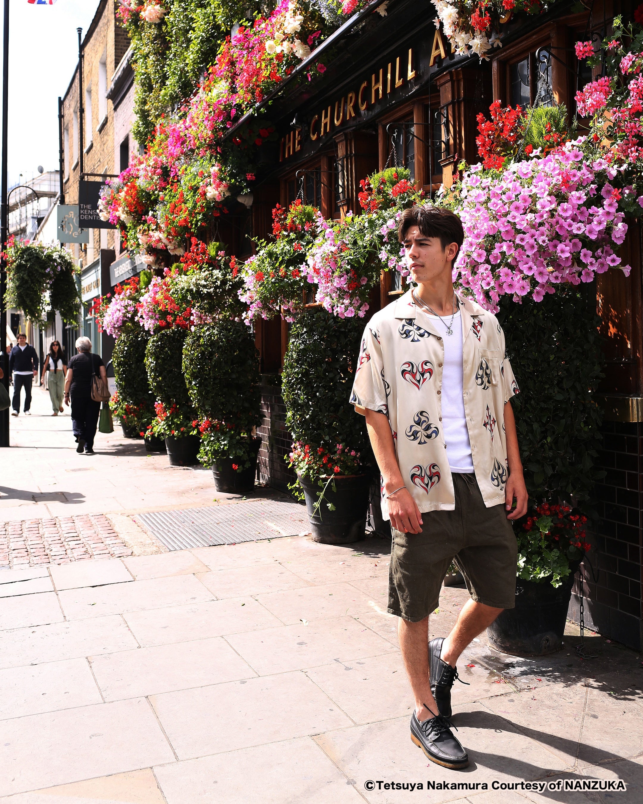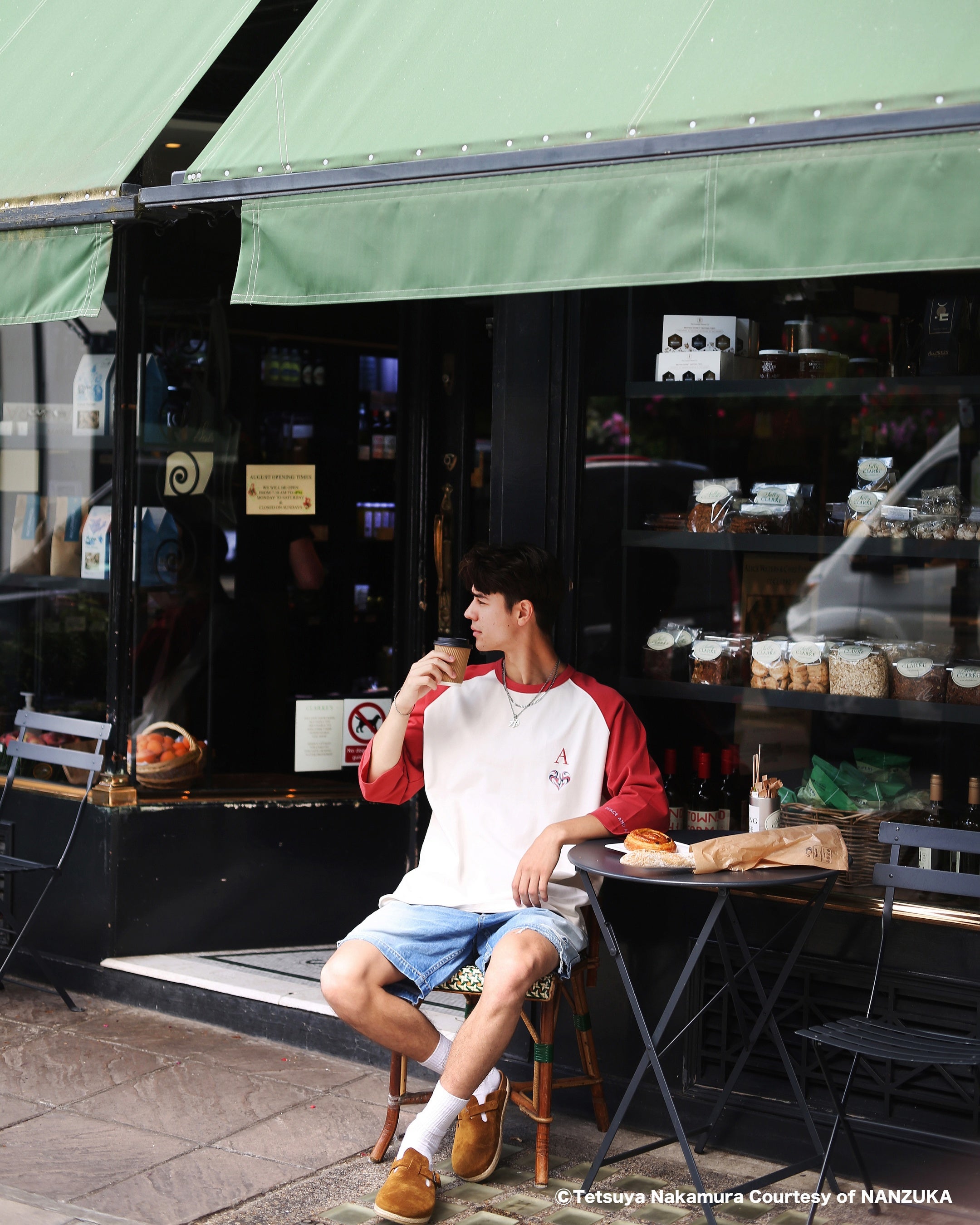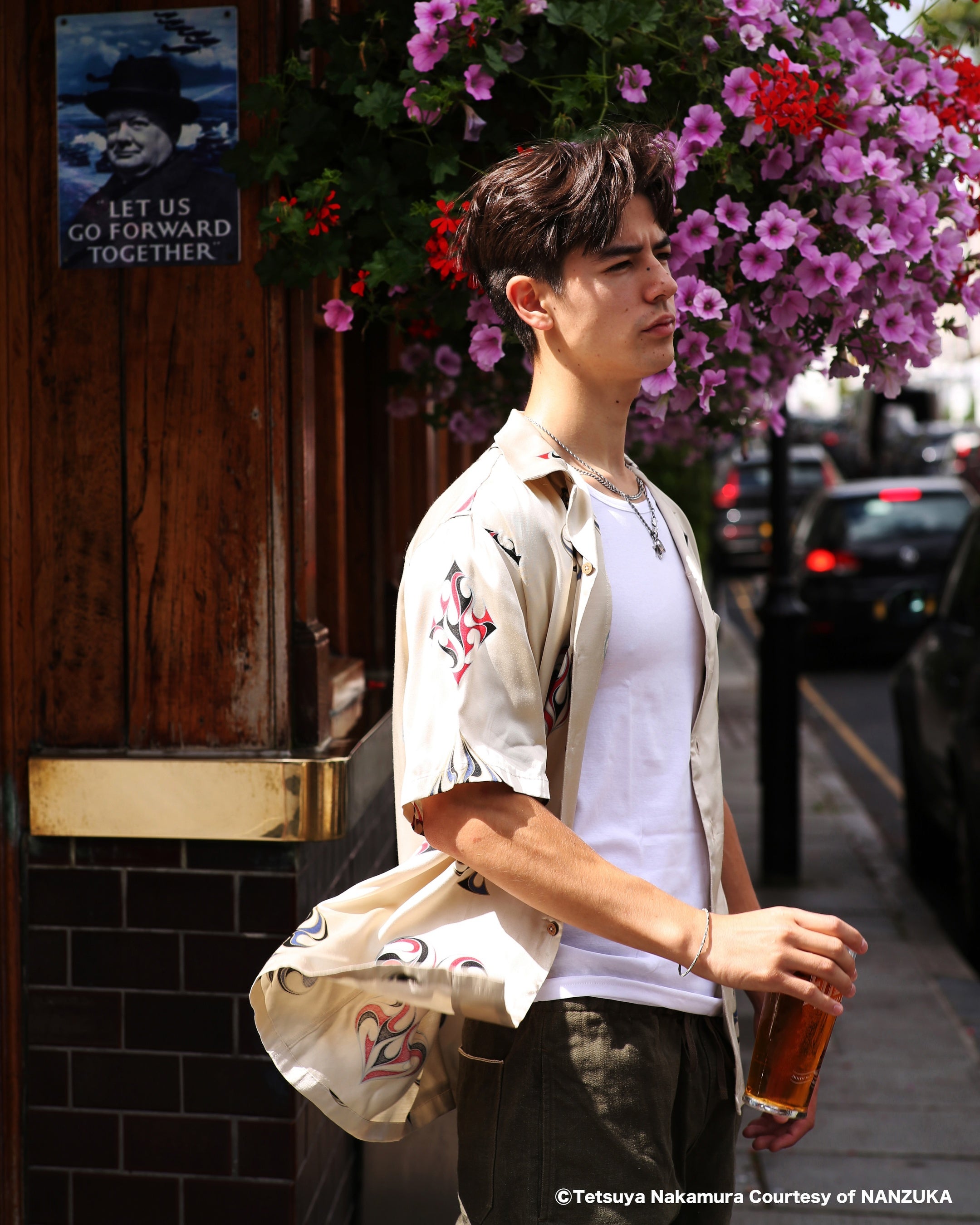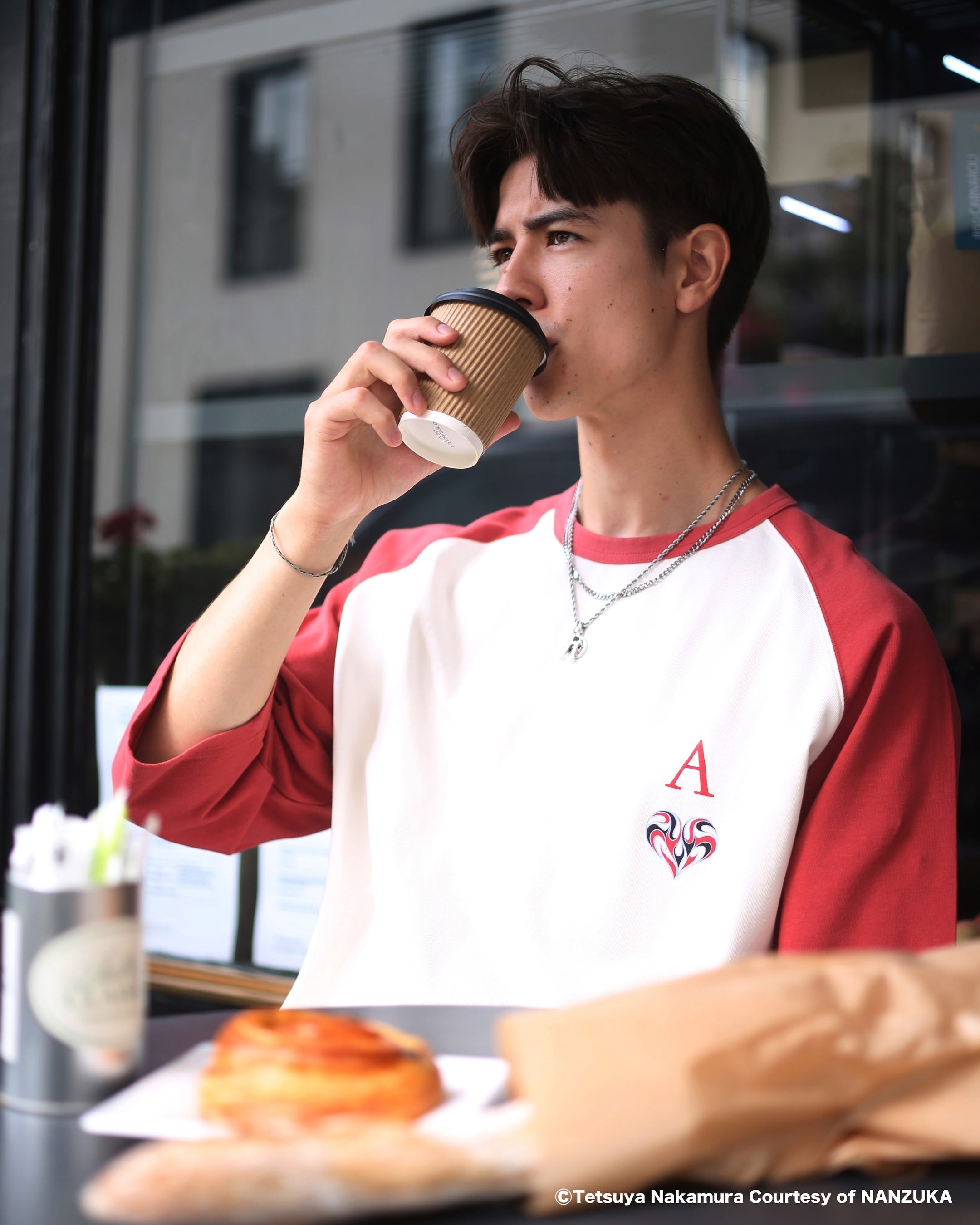 オープンカラーシャツ・ラグランスリーブTシャツの2型のアイテムへ落とし込みました。