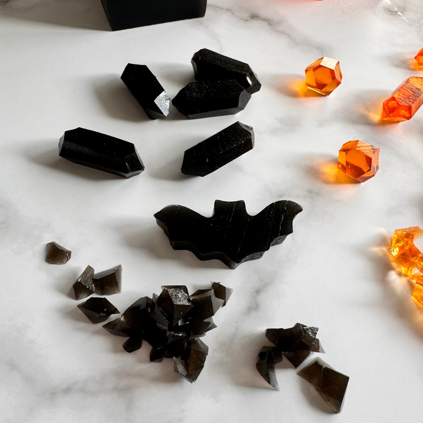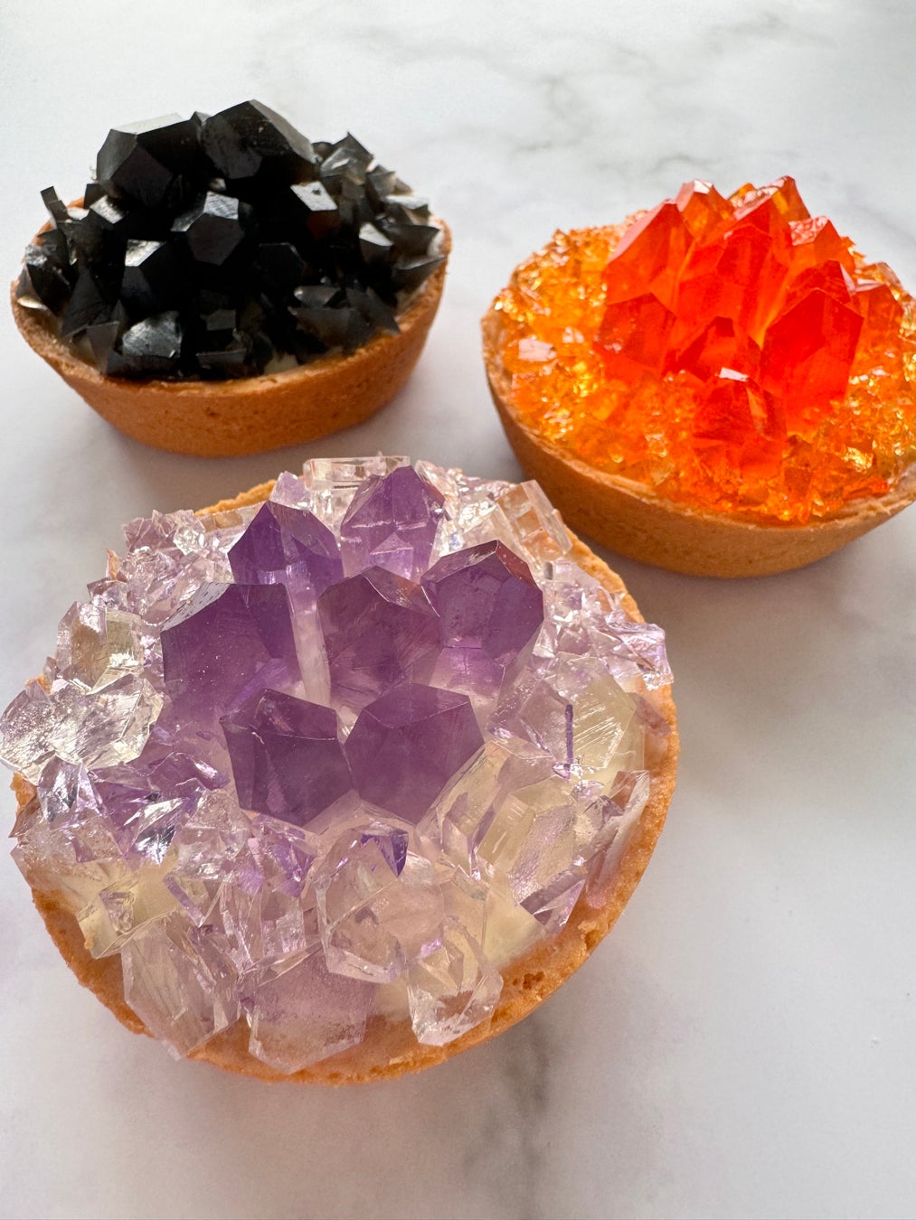 ハロウィンモチーフのクッキー型で抜いたり、水晶クラスターのような表現を楽しんだり。