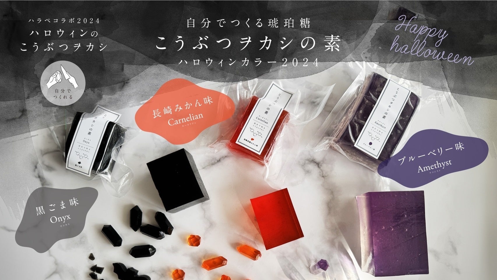 「ArtなFoodであそぶ」をテーマにプロダクトを展開するメルティングポットハラペコラボ株式会社(所在地:福岡県福岡市、以下 ハラペコラボ)から、ハロウィンシーズンのお菓子作りにおすすめの体験型商品が期間限定で登場。切って乾燥させるだけで琥珀糖を自宅で気軽に制作できる「こうぶつヲカシの素ハロウィンセット」を9月27日よりハラペコラボ公式オンラインストア他、福岡本店、大阪店での販売を開始しました。