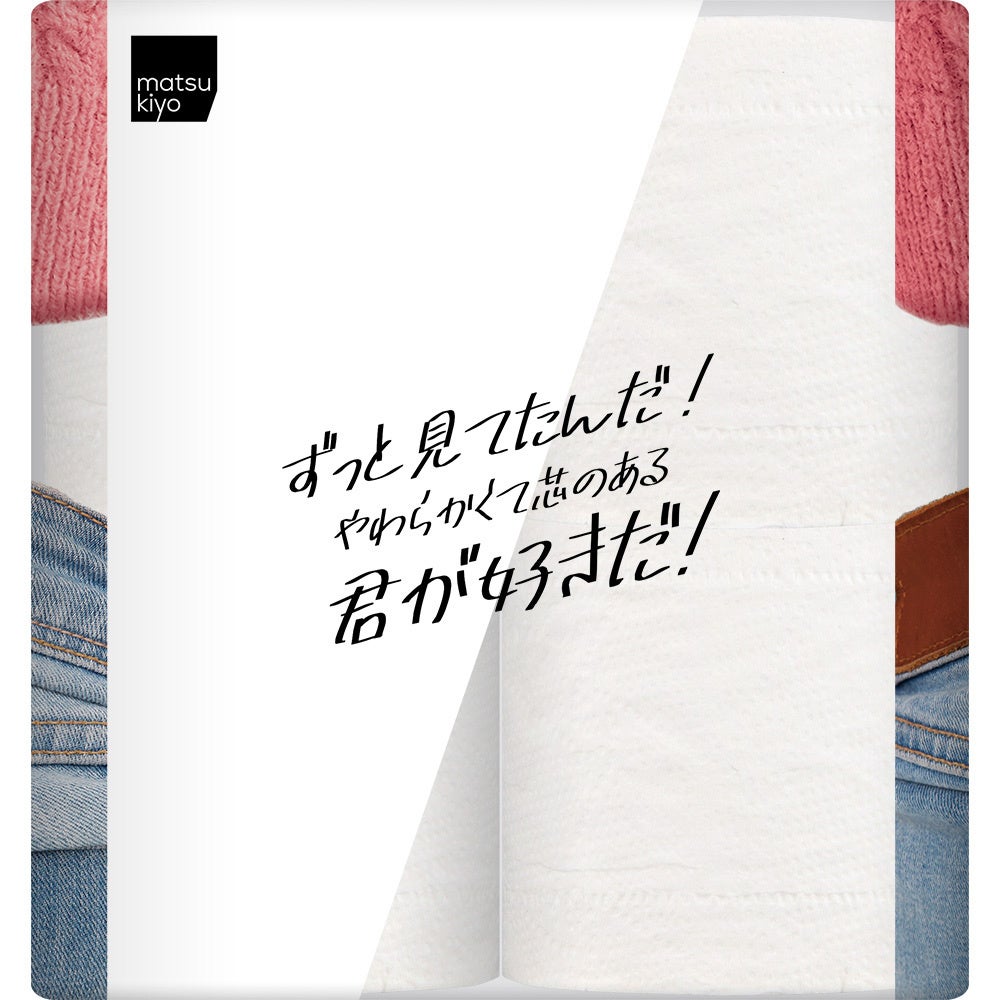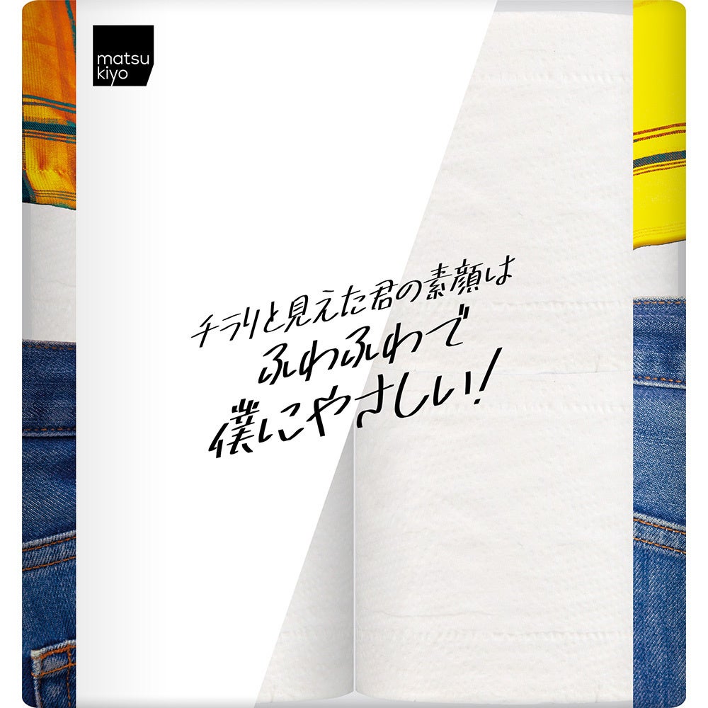 マツモトキヨシの新スクエアロゴ「マ」をモチーフにしたパッケージデザインのトイレットペーパーです。パルプ100%の素材にエンボス加工を施し、柔らかい肌触りに仕上げました。人気の長尺タイプで無香料、シャワートイレ対応の吸水力と消臭機能付きです。なお、パッケージの一部には、環境にやさしいバイオマス由来原料を使用しました。