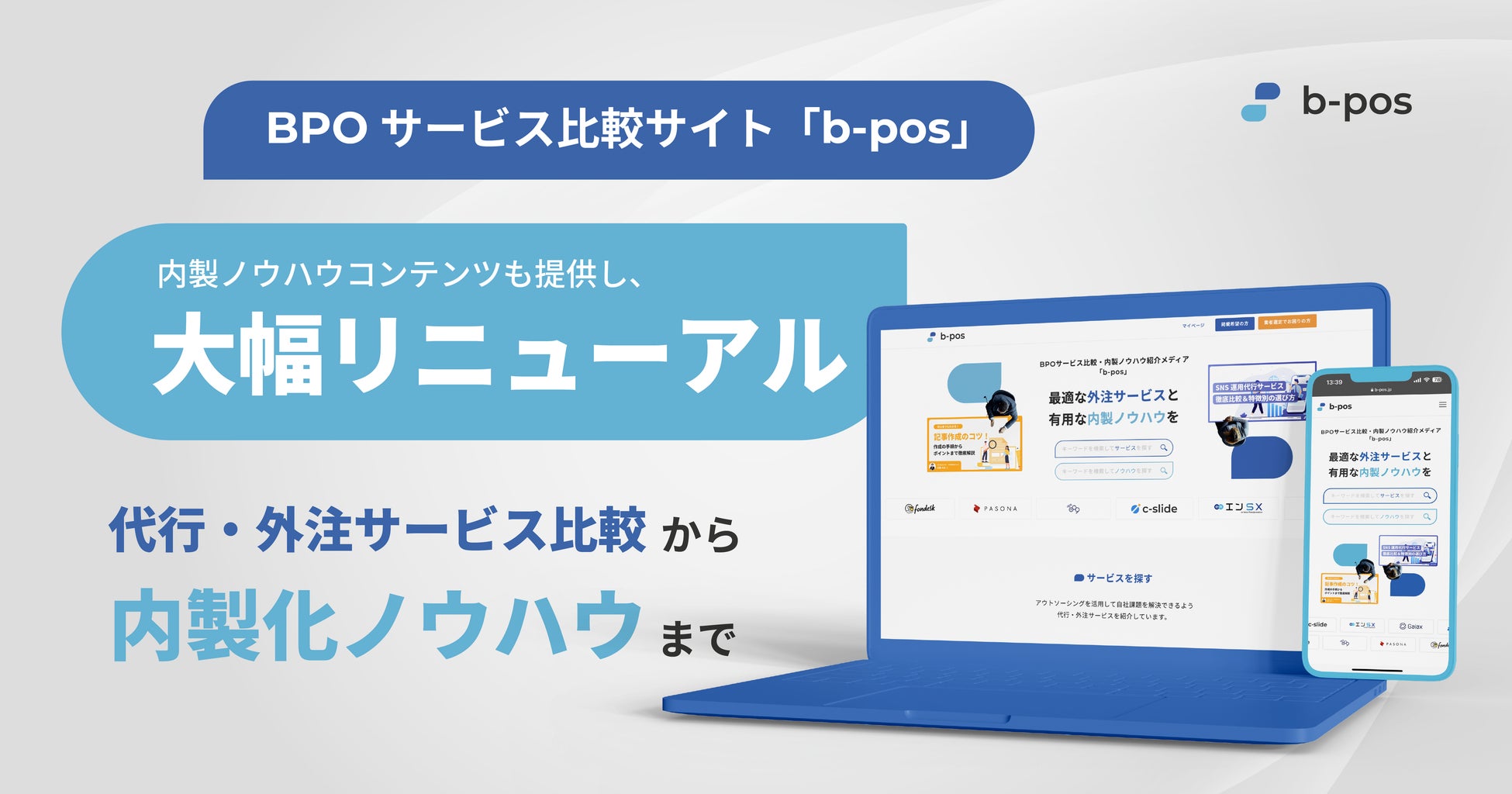 BPOサービス比較サイト「b-pos」が大幅リニューアル。サービス比較から各領域のプロが監修した内製ノウハウまで提供し、BPO領域に特化したウェブメディアへ