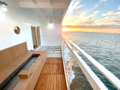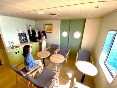 船内の隅々まで遊び心があふれており、神戸から小豆島までの約3時間の船旅が「あっという間」に感じられる、まさに「瀬戸内海に浮かぶテラスリゾート」です。