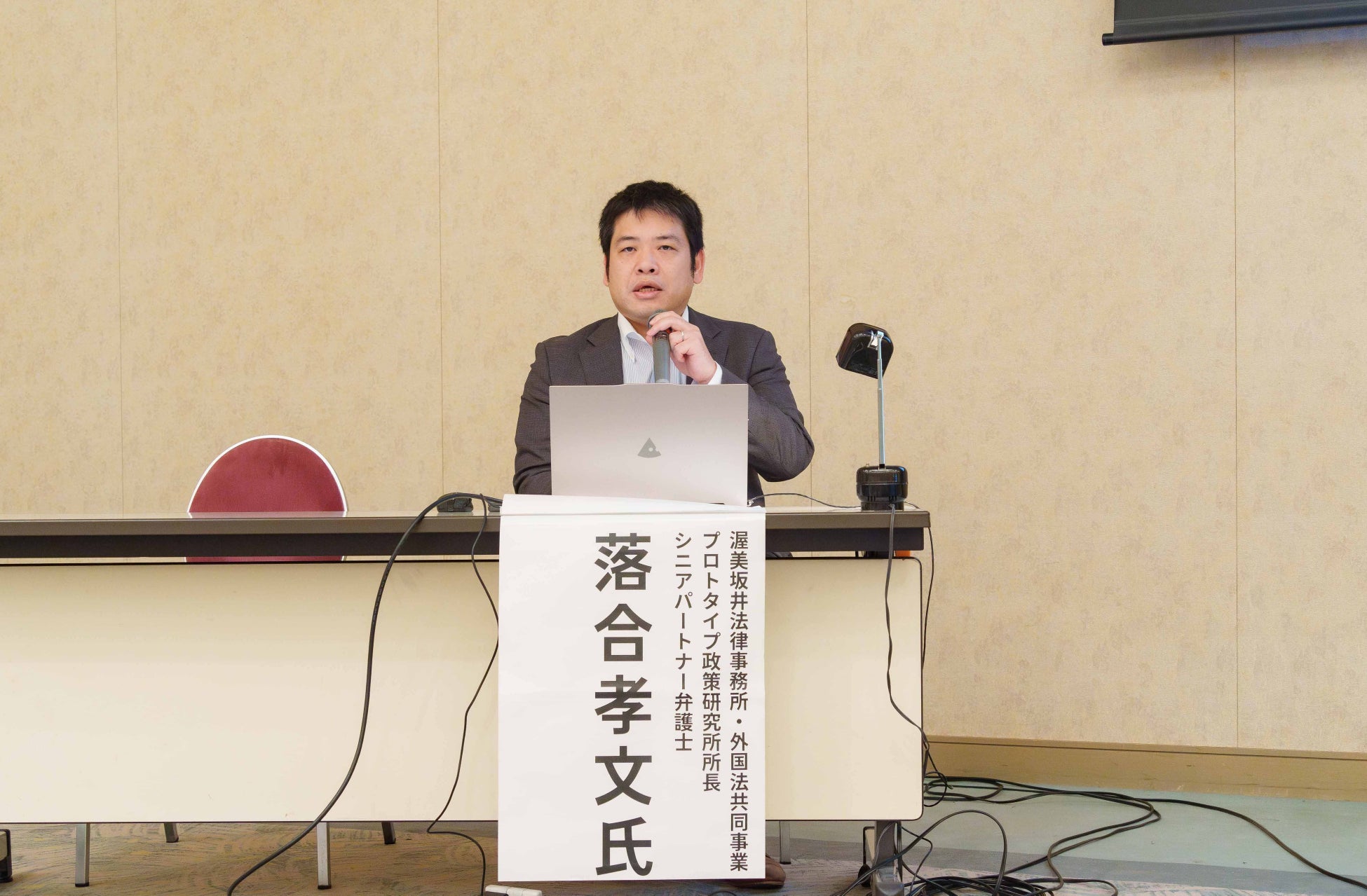 第一部では、内閣府中心市街地活性化評価・推進委員会委員でもある弁護士の落合孝文さまをお招きし、「市街地、不動産の有効な活用に向けた課題と論点」をテーマとした基調講演を行っていただきました。