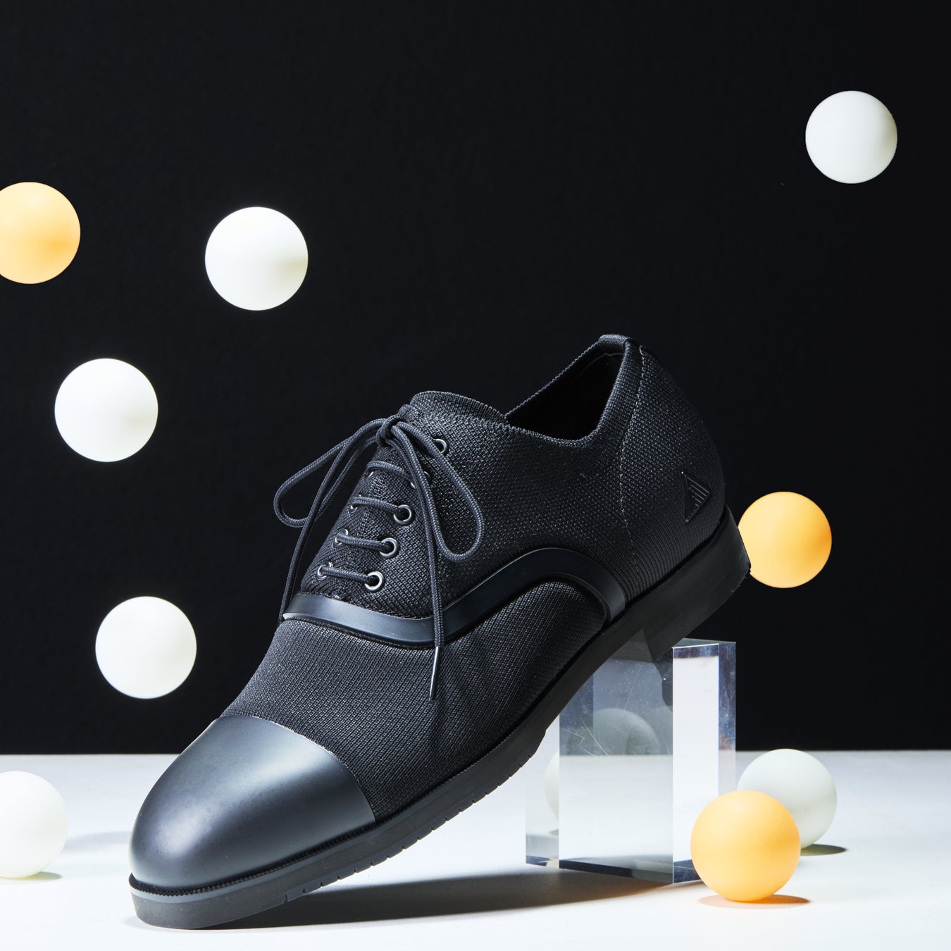デザインはドレスシューズの代表的な内羽根式を採用。ニット素材のアッパーに、オーセンティックなドレスシューズのデザインをベースにすることで、スーツからカジュアルまで幅広いスタイリングに対応。ラスト(木型)は、日本人の足形の基準値をベースに、モデリストと何度も修正を重ねて作成。ラストのボディにねじれを入れることで、歩行しやすいように設計しています。全天候対応型の快適性と履き心地を兼ね備えた、既存のビジネスシューズとは一線を画す一足です。