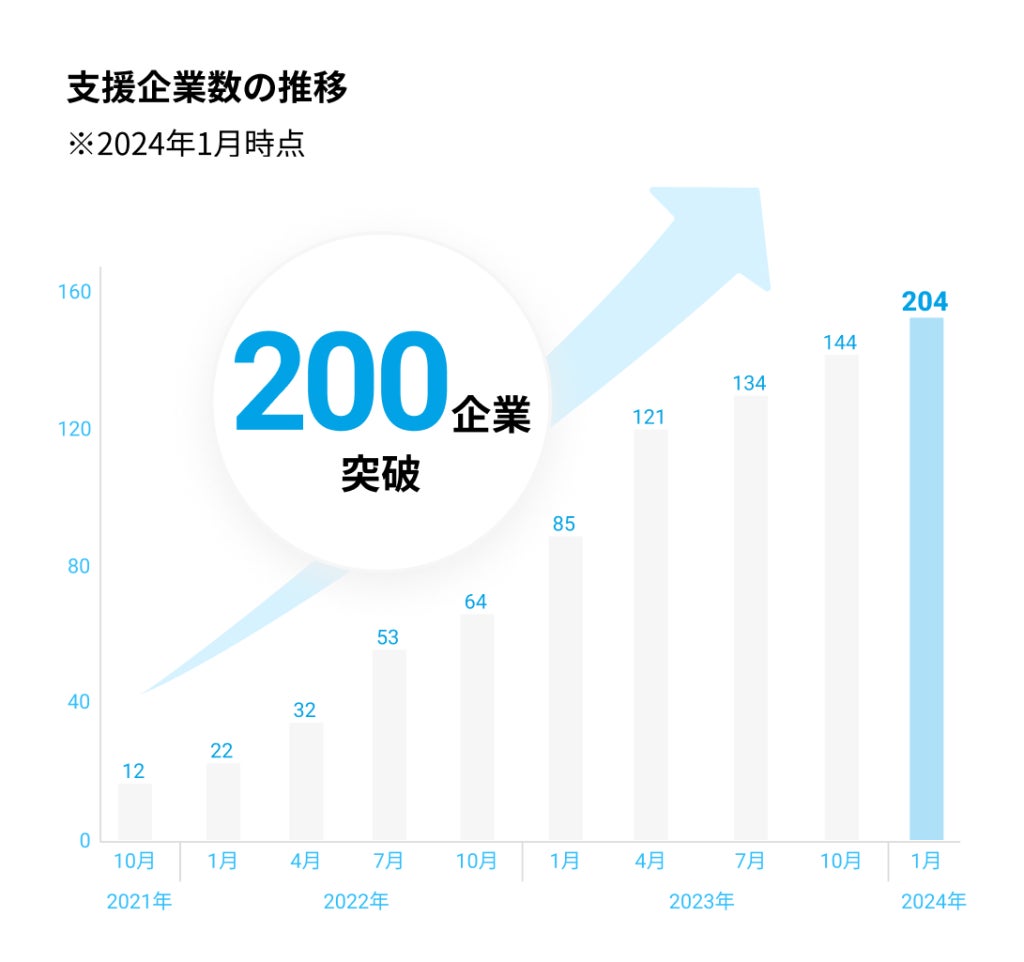 お問い合わせ実績1000件、累計開発実績300件、支援企業数は200件超え。