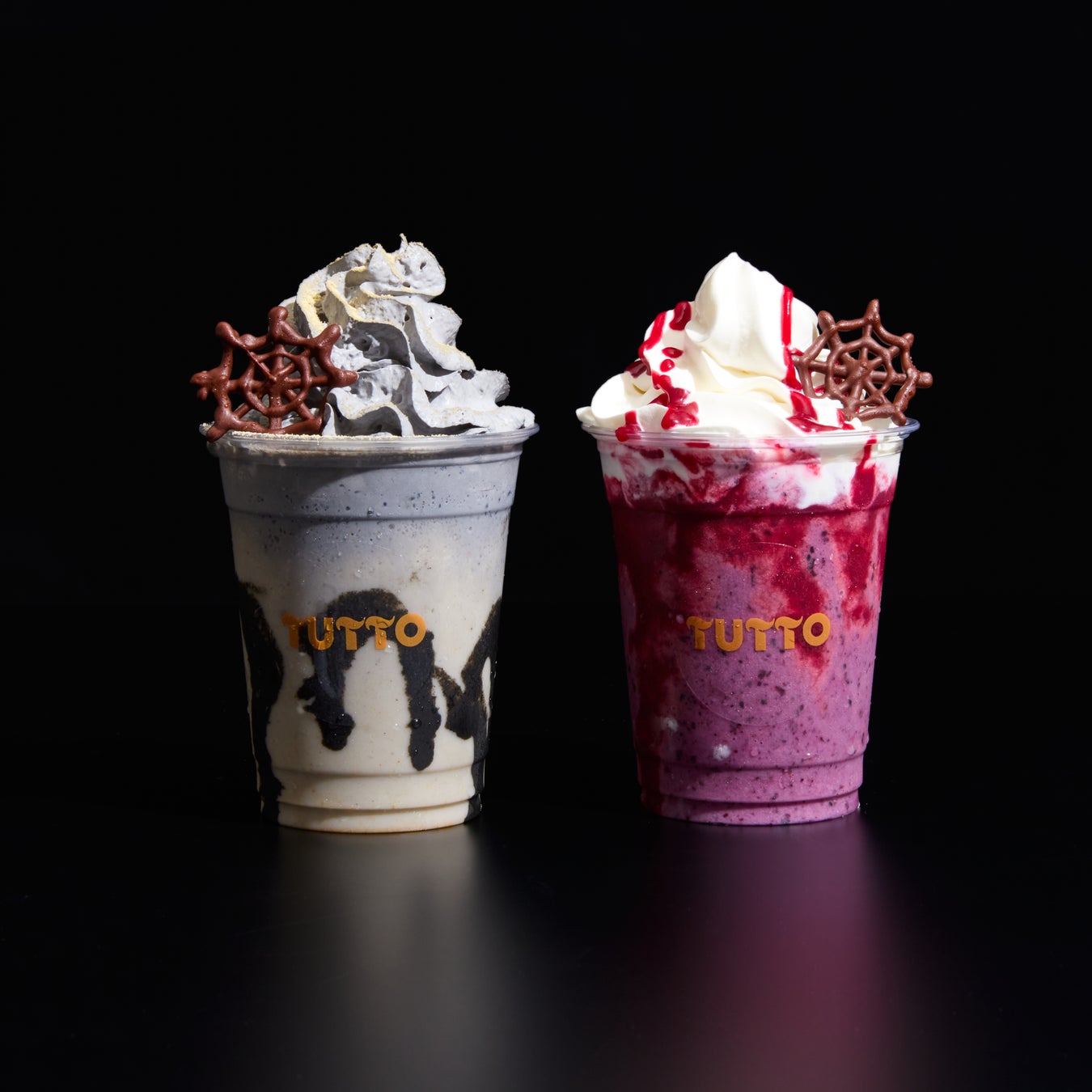 TUTTOのクッキーサンドがCUTEなハロウィンver.に変身!玄米粉・米粉など店舗で配合したグルテンフリーフラワーと米油で焼いたグルテンフリークッキーはジェラートと相性ぴったりのチューイーなソフトクッキです。蜘蛛の巣のアイシングクッキーにお好きなジェラートをサンド。自分だけのオリジナルのハロウィンクッキーサンドをお楽しみください!