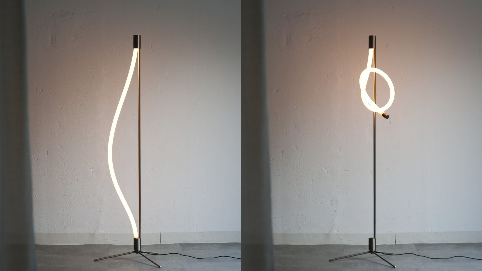 「Yunel ropeは、“曲げられるフロアランプ”です。完成された形を届けるのではなく、使う人が触れながら整えていく照明をつくりたいと思いました。